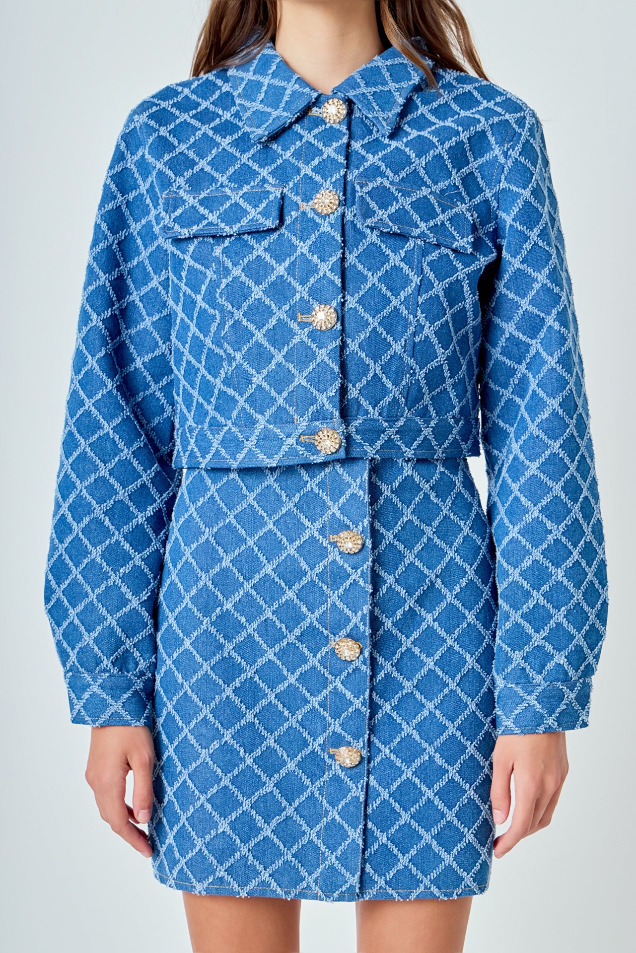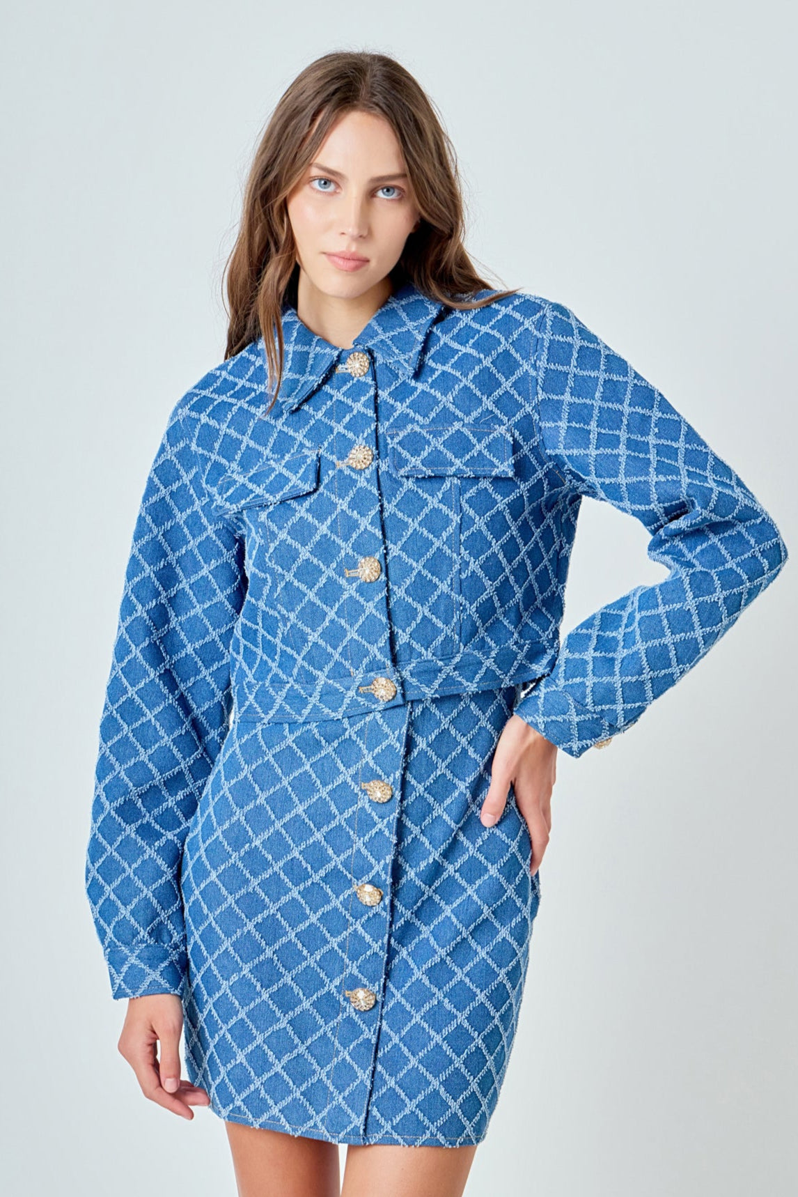 Refresh your look with our must-have Distressed Cropped Denim Jacket the perfect mix of edge and style. Designed with a flattering cropped silhouette, this standout piece features a classic collar, eye-catching jewel buttons, and front flap pockets for added function and flair. Whether you're layering it over a dress or pairing it with high-waisted jeans, this jacket adds a cool, modern twist to any outfit. Versatile, glam, and effortlessly chic it's the denim upgrade your wardrobe has been waiting for. Don't miss out, shop now and own the trend!