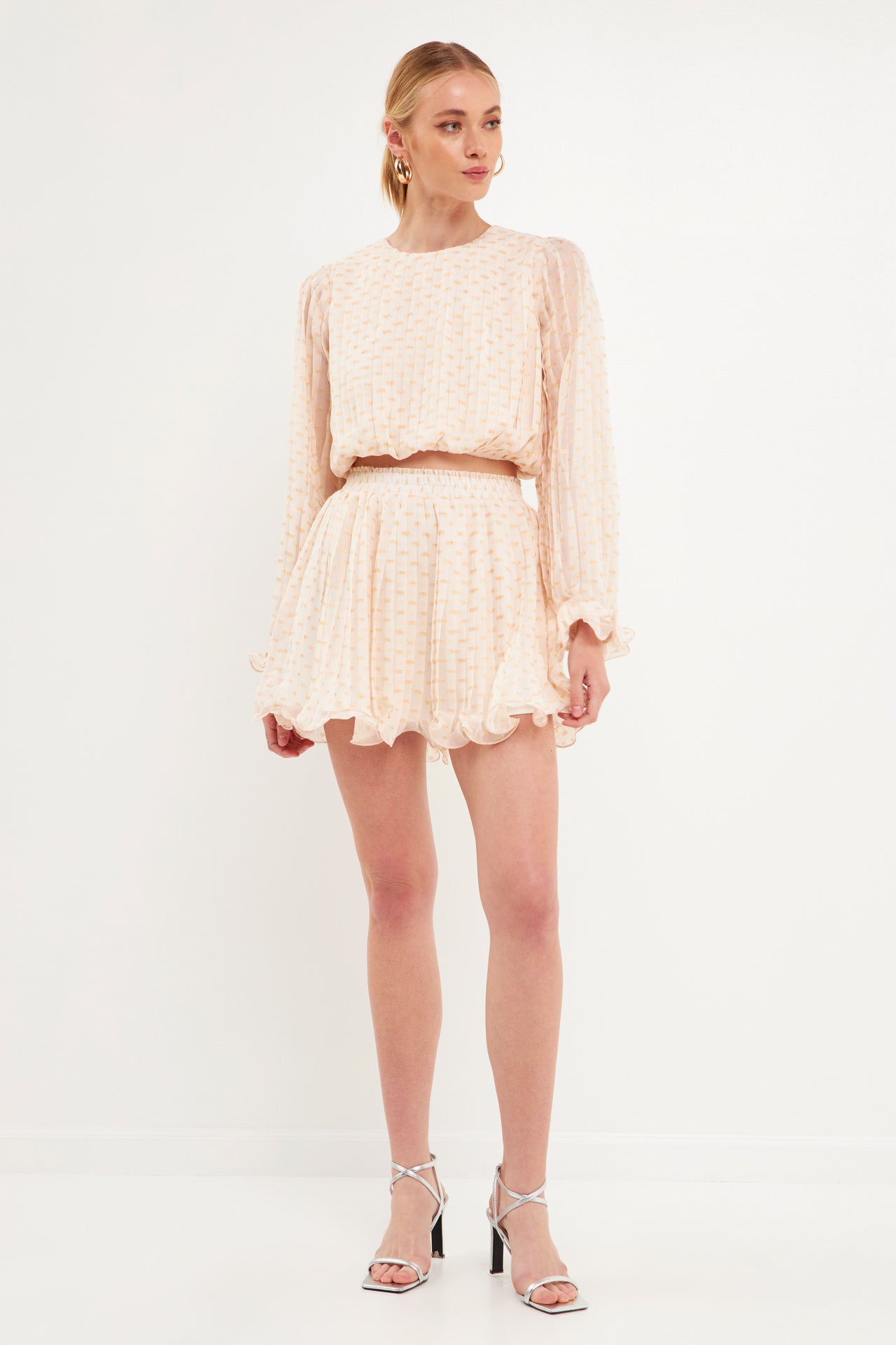 A feminine top with a touch of edge. This blouson crop top is given a playful update with pleated detailing. It features long sleeves and an elastic waist for a comfortable fit. Pair it with some high-waisted trousers for an elegant look, or dress it down with jeans for a more casual ensemble.