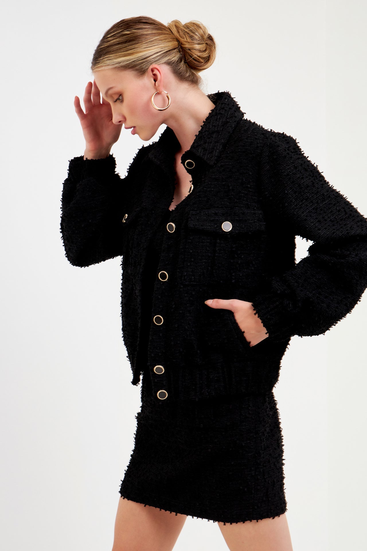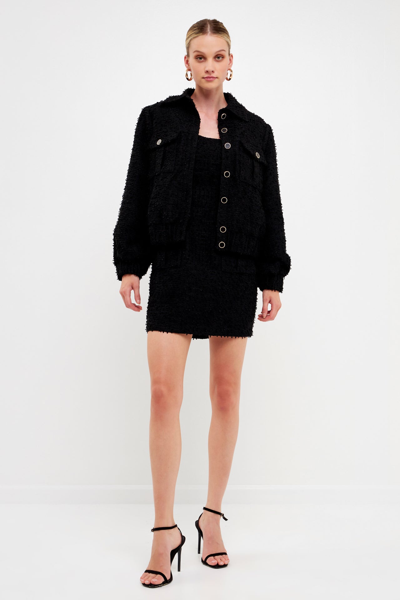 It's time to add some tweed to your wardrobe. This unique tweed jacket from endless rose is perfect for pairing with the matching mini dress or your favorite jeans and a basic tee. The baggy fit and satin lining help to make sure that you're comfortable all day long. And don't forget the details! The gold-rimmed buttons add a touch of class and elegance.