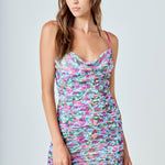 This feminine and flirty mini is perfect for your next date night. The cowl neck bust and ruched bodice are figure-flattering, while the adjustable spaghetti straps provide the perfect fit. The floral print is perfect for spring, and the mini length shows off your legs. The lining ensures that this dress is as comfortable as it is beautiful.