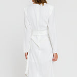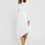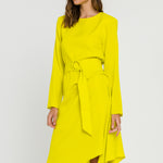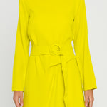This stunning Draped Dress with Belt will have you looking ultra chic! Featuring long sleeves, a round neckline, draped pleats design and an invisible zipper closure at the back, this dress was designed with a minimalist yet elegant feel. Whether it's for a night out or a special occasion, this dress is sure to make you stand out! Its geometric design gives it a unique eye-catching look. Add the perfect finishing touch with one of our fashionable belts for an unforgettable look.