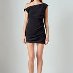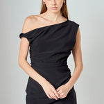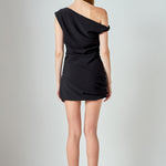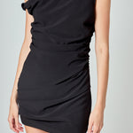 Make an unforgettable entrance in our Draped Mini Dressâ€â€ÂÂÂa statement piece defined by modern elegance and sculptural lines. Designed with a graceful one-shoulder neckline and artful draping, this dress flatters the form with a sleek, body-skimming silhouette. The asymmetrical detailing and mini length create a bold yet balanced look, perfect for evening soirées, date nights, or any occasion that calls for confident style. Crafted with care and elevated with refined structure, this piece brings drama, polish, and edge to your wardrobe.
