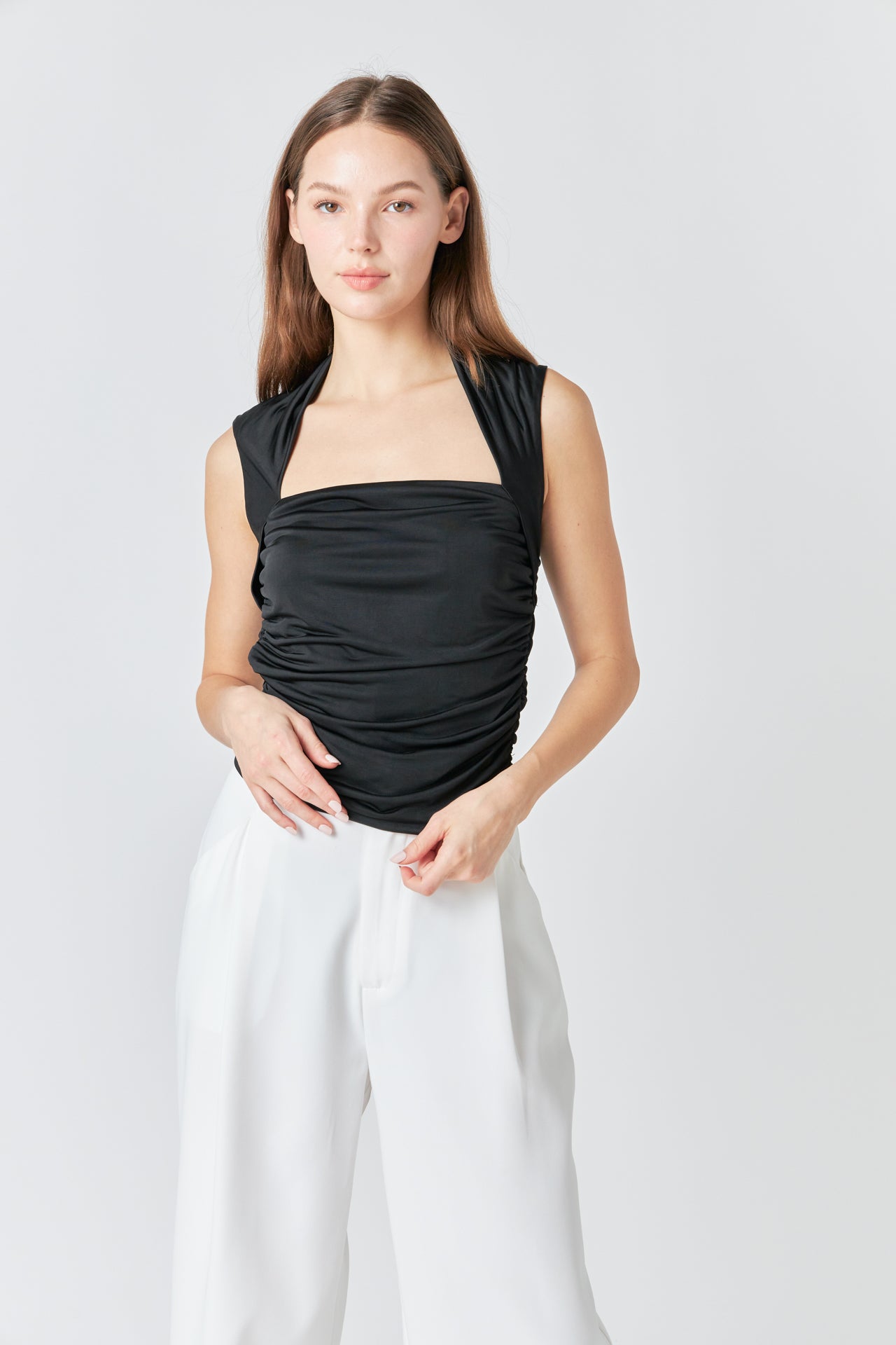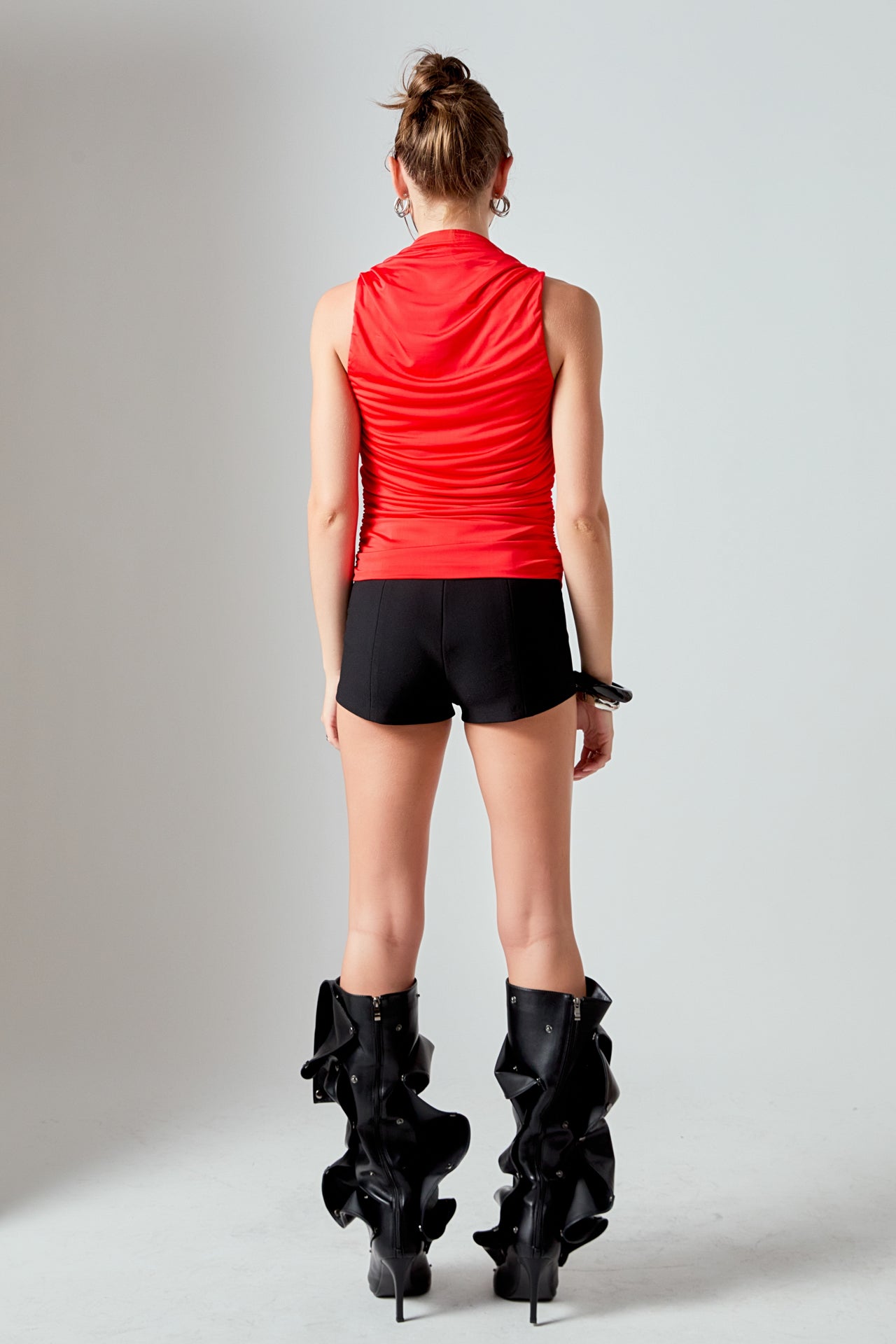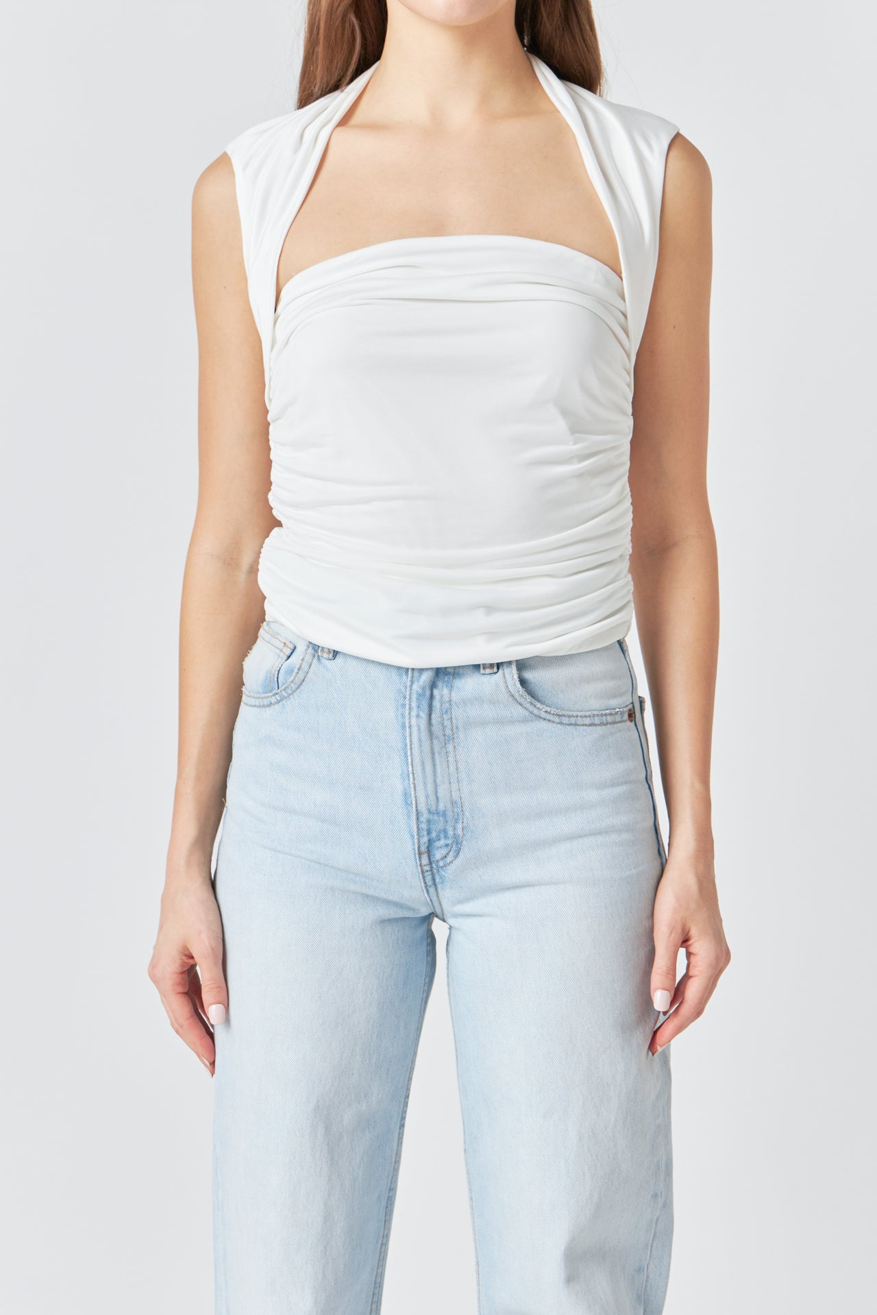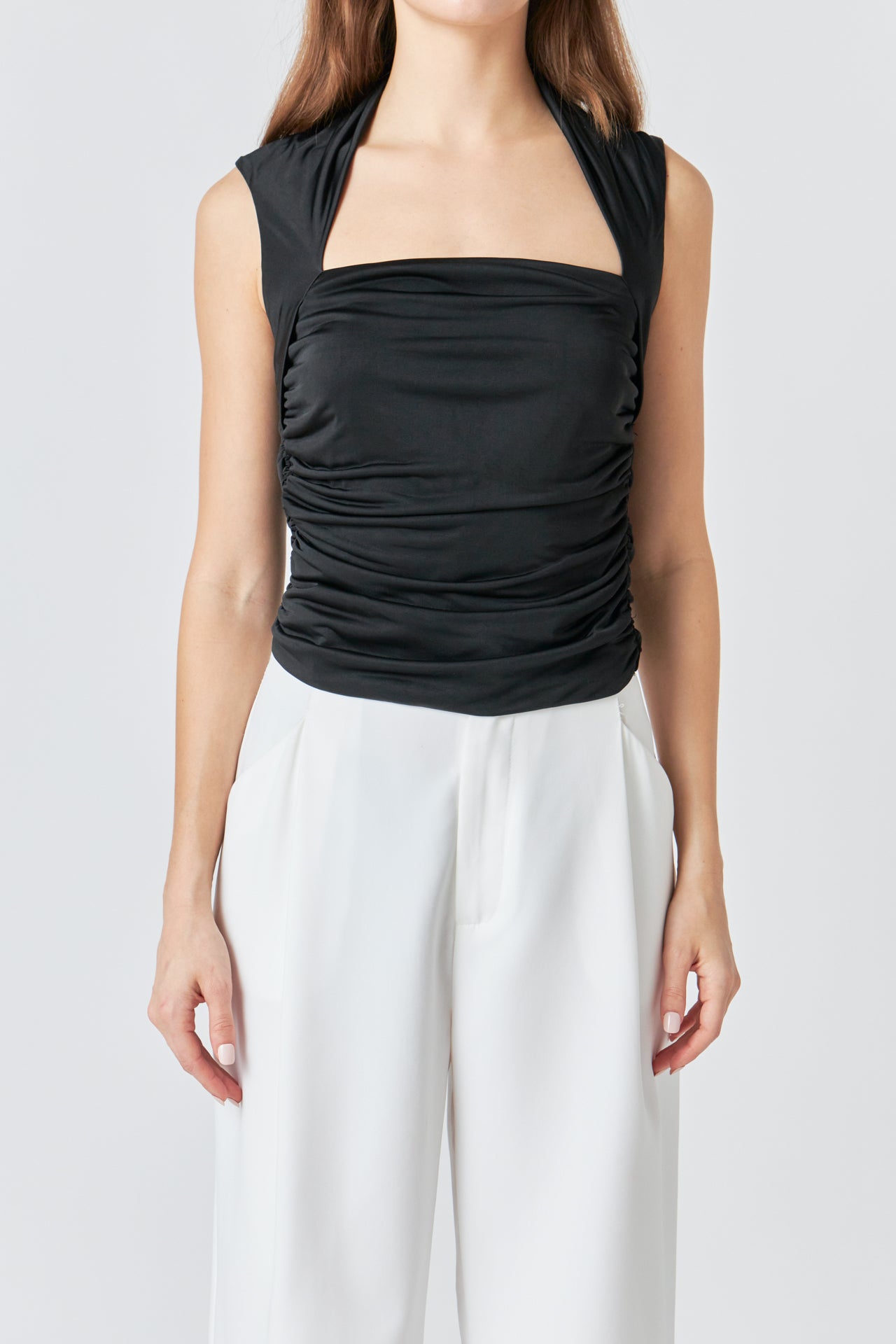 This sleeveless draped ruched top is a perfect pick for any occasion! With its stretch fabric and off-the-shoulder silhouette this modern top contours the body in all the right places. The ruching details contribute to its unique on-trend look. Look and feel great with this stunning addition to your wardrobe. The perfect mix of trendy and timeless styles that will never go out of fashion!