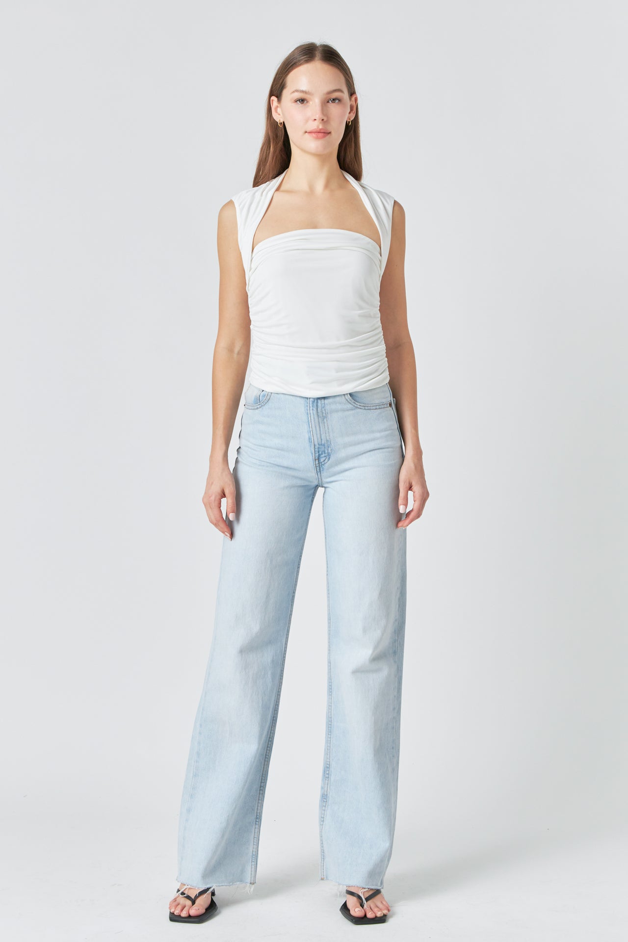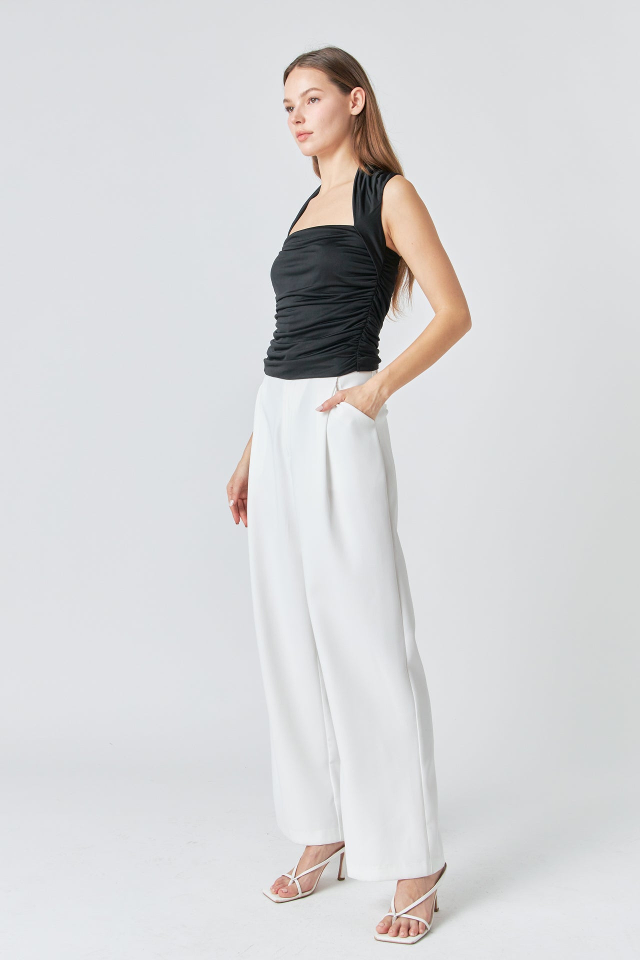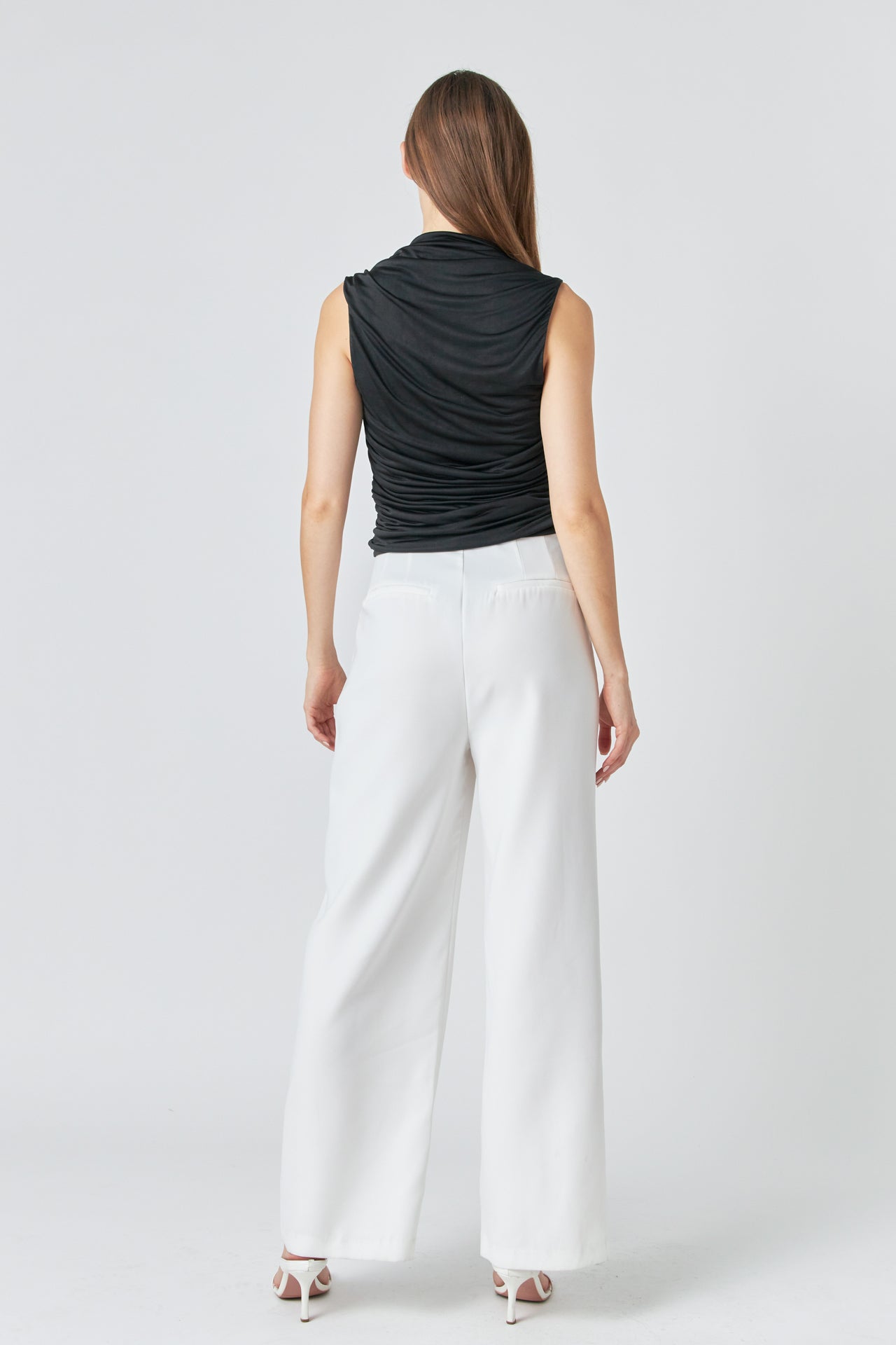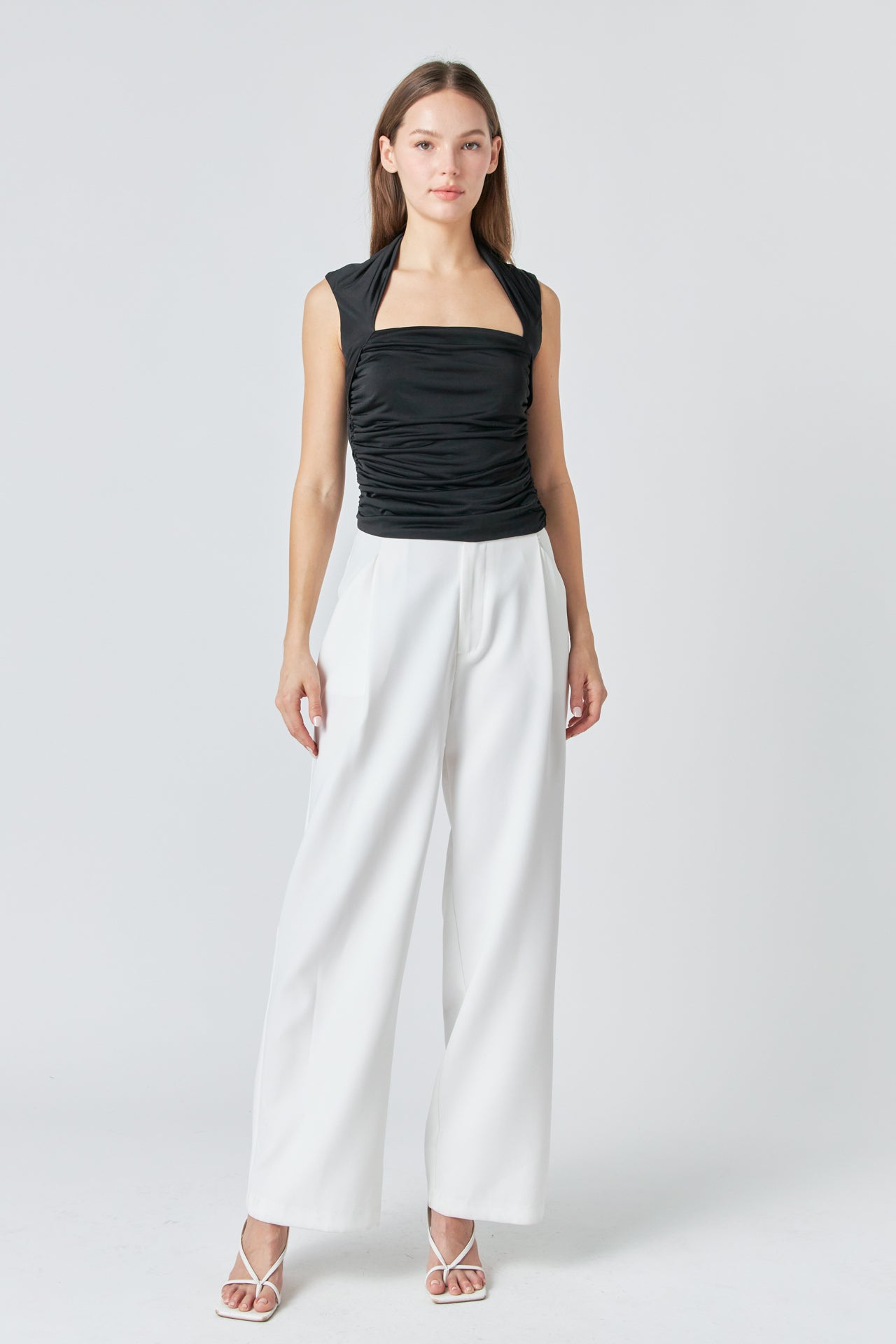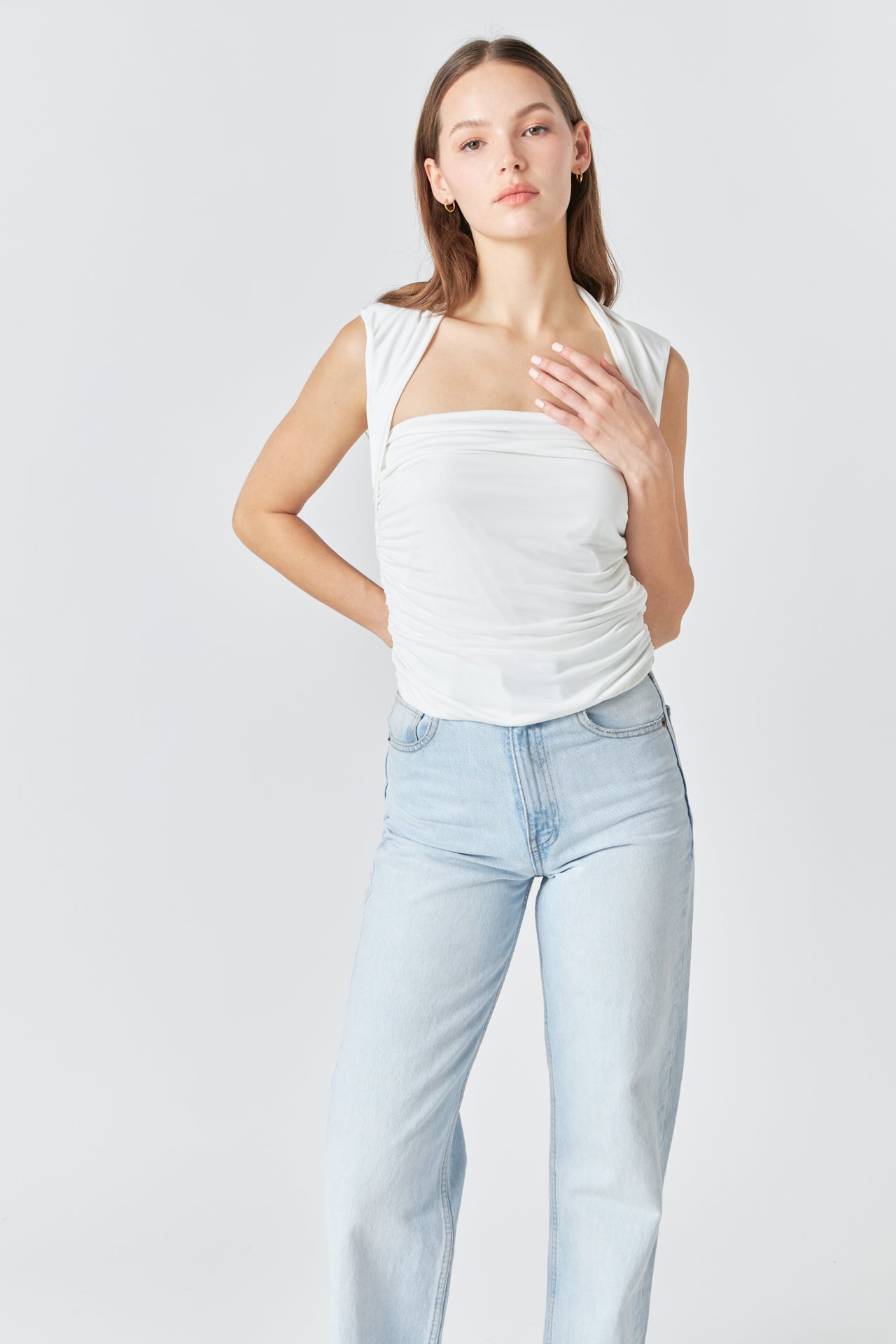 This sleeveless draped ruched top is a perfect pick for any occasion! With its stretch fabric and off-the-shoulder silhouette this modern top contours the body in all the right places. The ruching details contribute to its unique on-trend look. Look and feel great with this stunning addition to your wardrobe. The perfect mix of trendy and timeless styles that will never go out of fashion!
