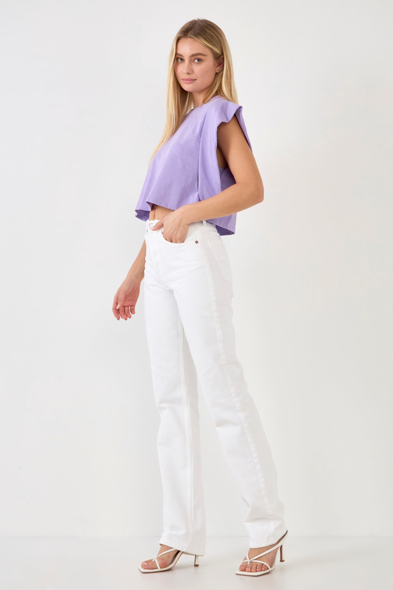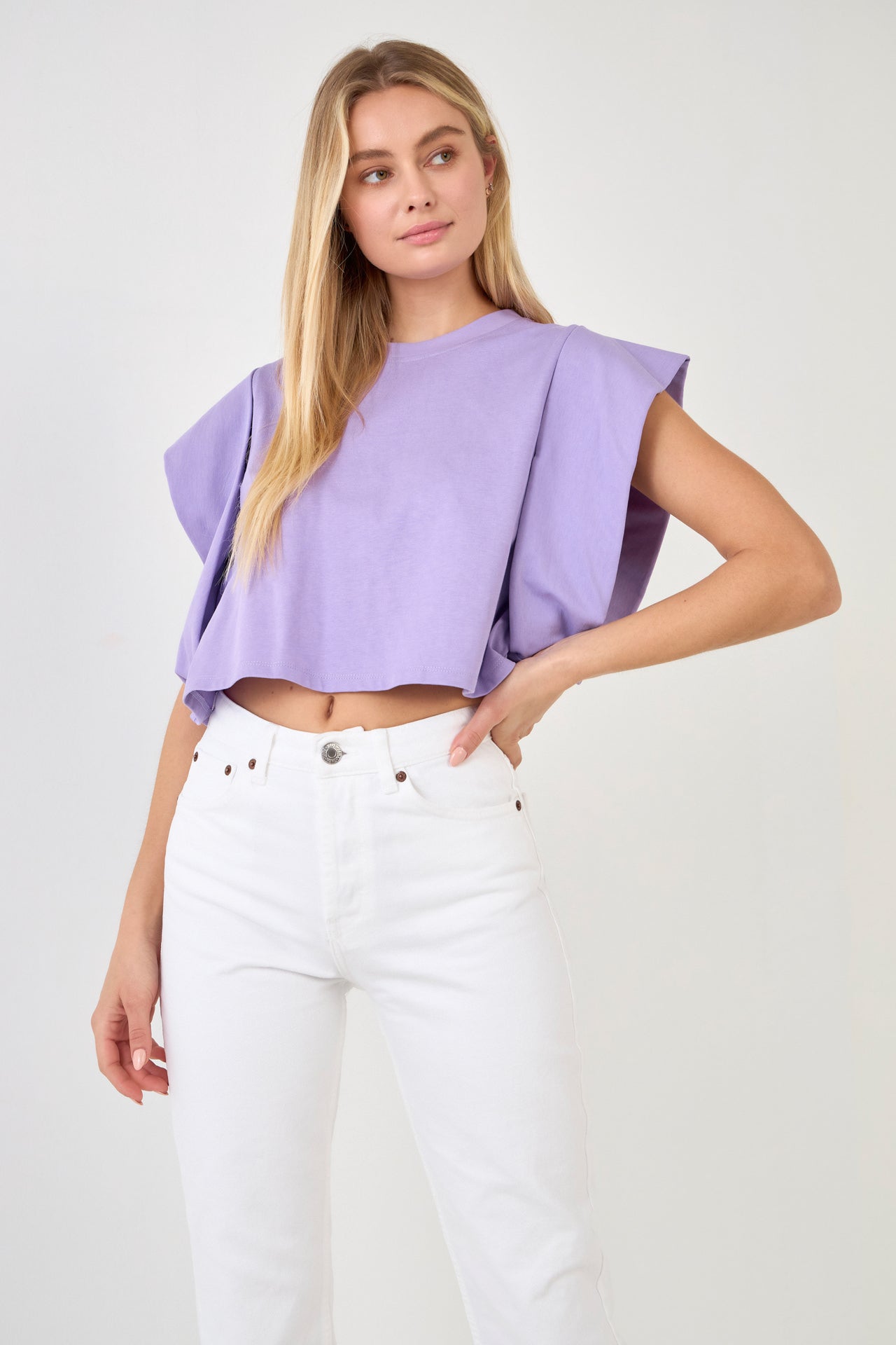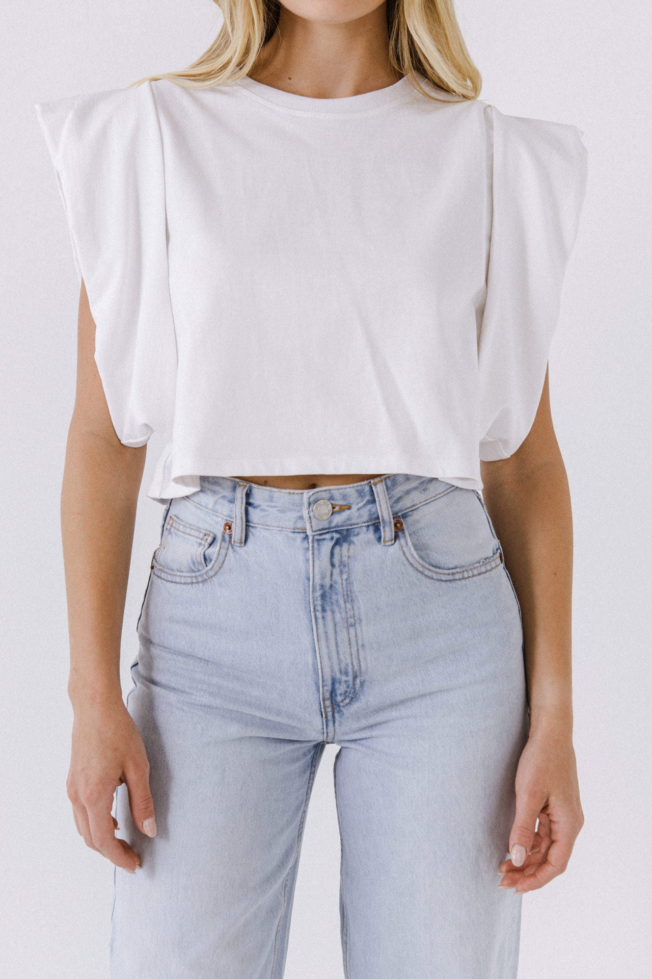 A cute and cropped top for all your warm weather adventures. This top features a round neckline, short sleeves, and a cropped length. The drop shoulders give this top a relaxed and comfortable fit.