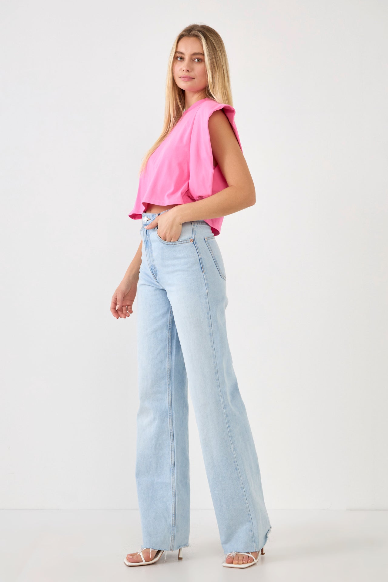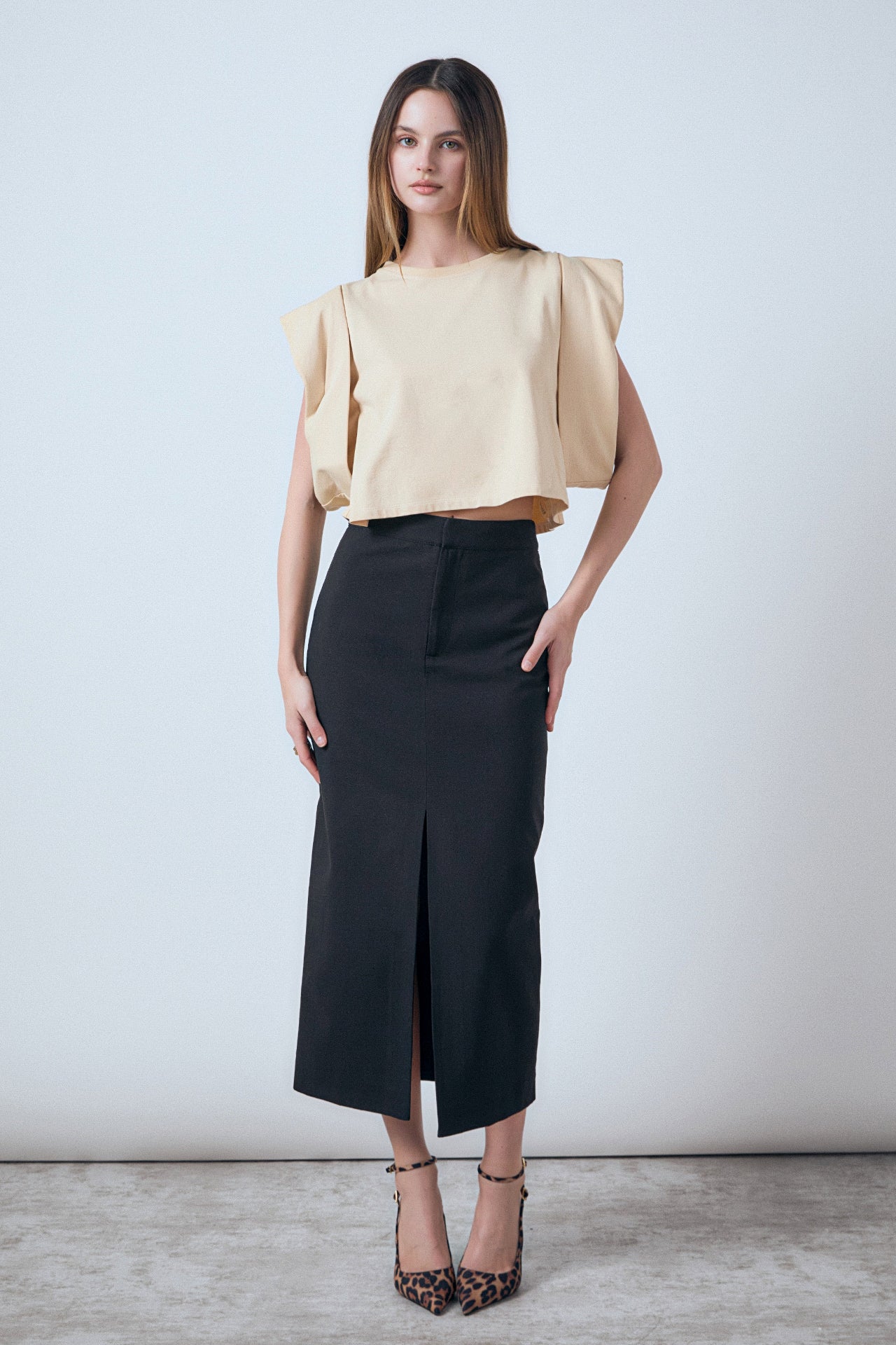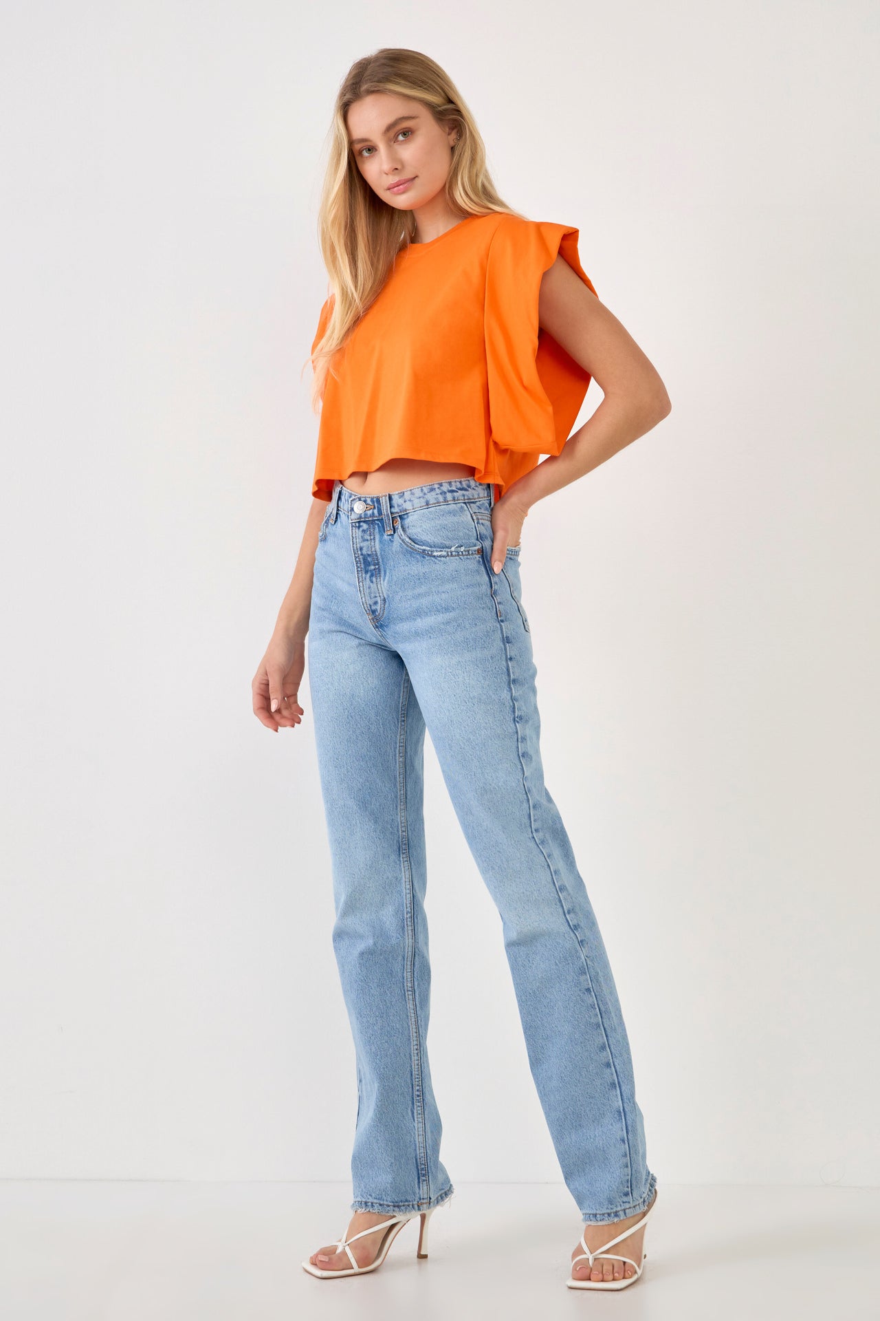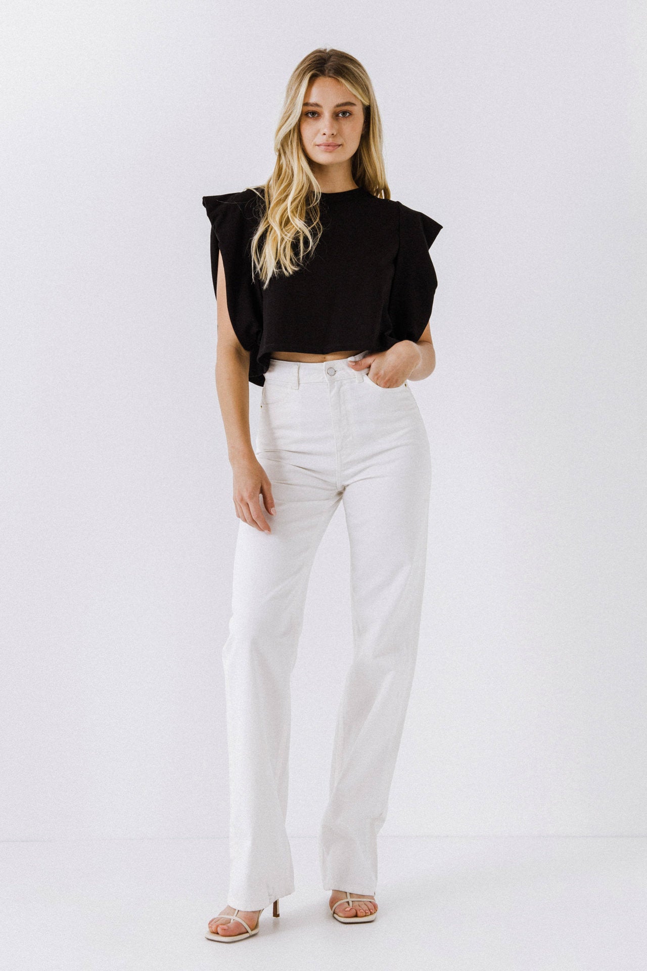 A cute and cropped top for all your warm weather adventures. This top features a round neckline, short sleeves, and a cropped length. The drop shoulders give this top a relaxed and comfortable fit.