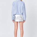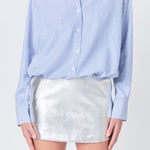 Add a touch of effortless style to your outfit with our Elastic Hem Shirt - the perfect addition to your collection of shirts and blouses. Featuring a front button closure and a loose fit this shirt offers the perfect balance of comfort and sophistication. Its collared design adds a classic touch while the bottom adjustable elastic cord allows you to customize your look. Made with high-quality materials this shirt is guaranteed to become your new go-to. Upgrade your wardrobe with our Elastic Hem Shirt today and stand out from the crowd. Perfect for any occasion this must-have shirt is a timeless piece that you won't want to miss.