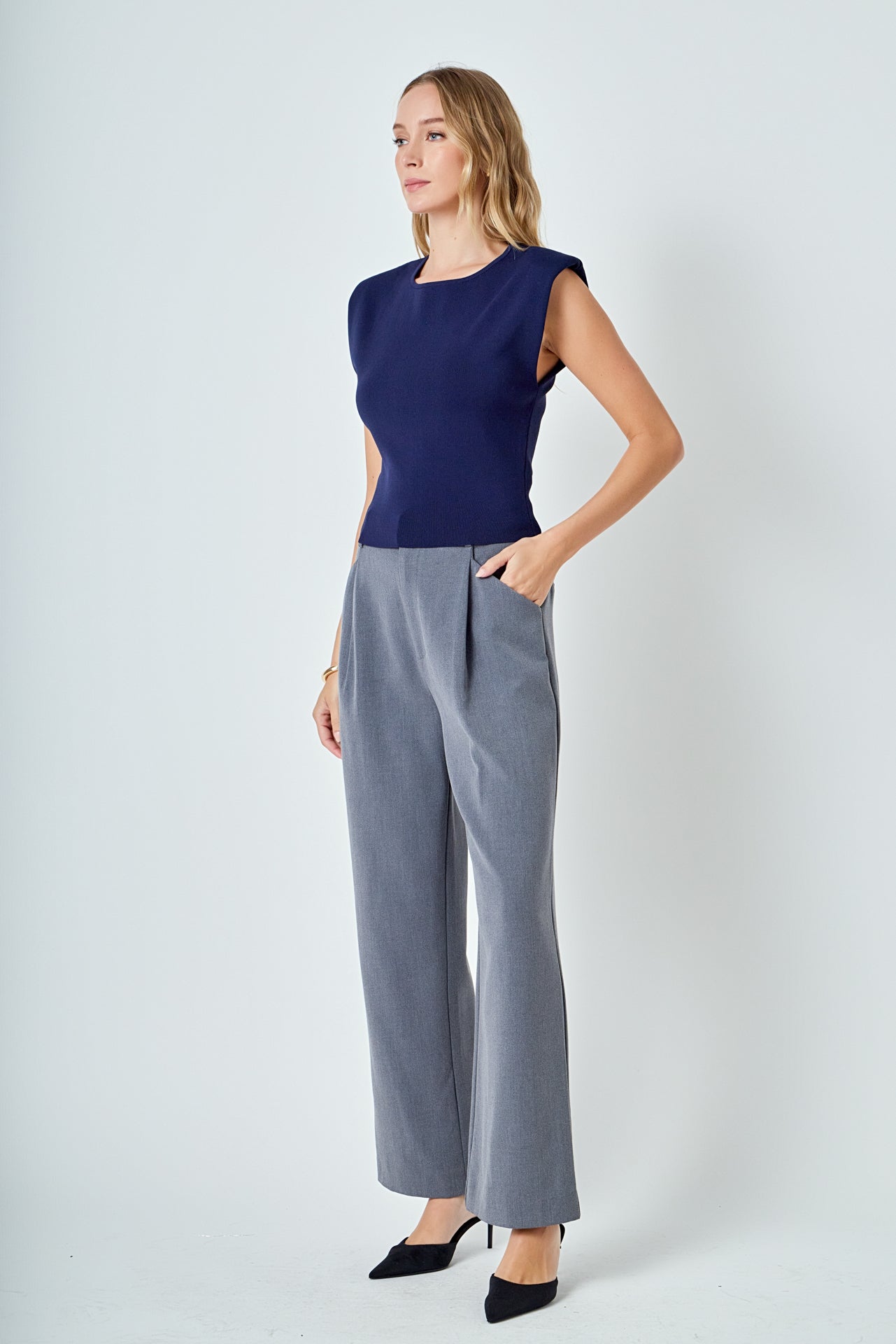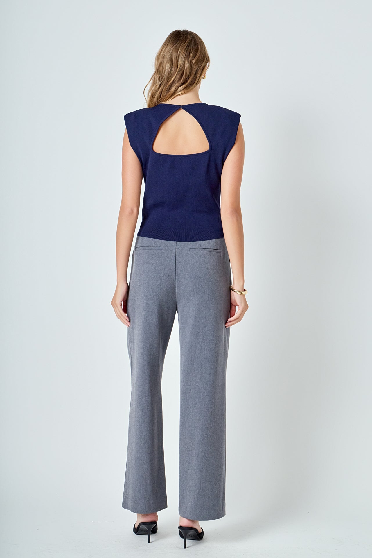 This elevated knit top is a must-have for a polished and put-together look. With a stylish shoulder pad and open back detail, this top is perfect for giving your look a little edge. The fitted silhouette and button loop closure make it perfect for dressing up or down. Whether you're dressing up for work or going out on the town, this top is sure to elevate your style.