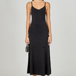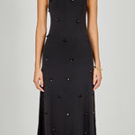 Elevate your look with our Embellished Knit Midi Dress. Crafted from cozy, stretchy knit, it features delicate straps and eye-catching embellishments for a flattering and feminine fit. Perfect for cooler days, parties, or formal events, this versatile midi adds effortless glamour to any occasion. A must-have addition to your dress collection.