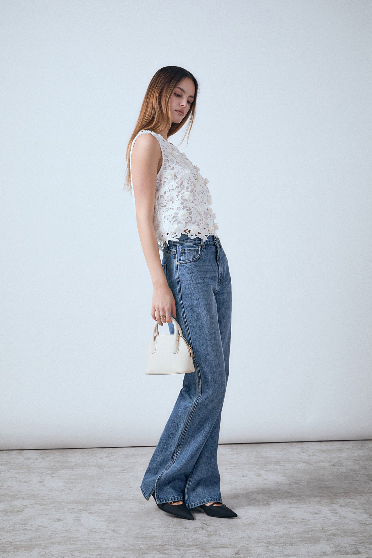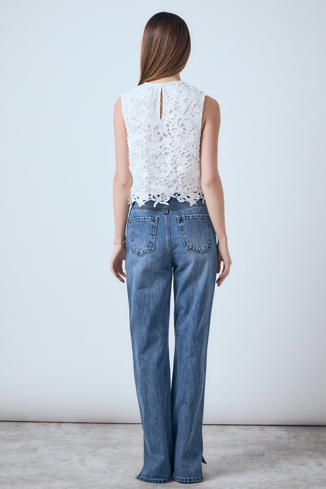 Introducing our stunning Embellished Sleeveless Top, a must-have for every fashion-forward wardrobe. Crafted with delicate lace this top exudes elegance and sophistication. The round neckline and sleeveless design add a touch of modernity perfect for any occasion. The gorgeous front flower embellishment details take this top to the next level making it a true statement piece. Create a statement look by pairing it with your favorite bottoms. Don't miss out on adding this versatile top to your collection. Shop now and elevate your style game with our Embellished Sleeveless Top.