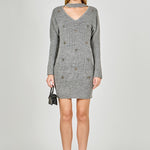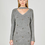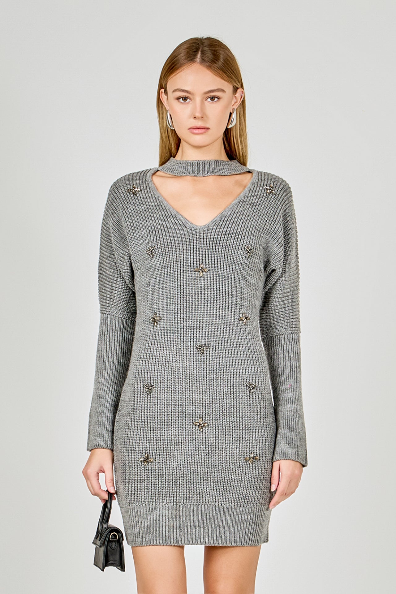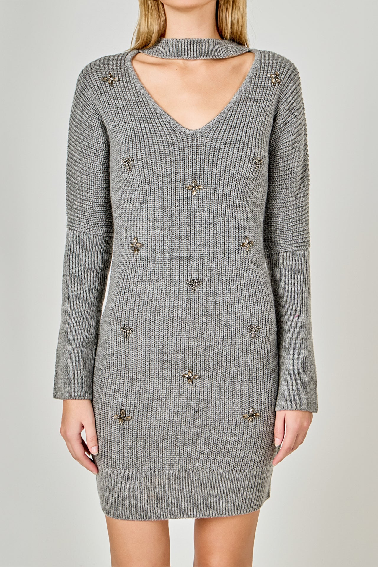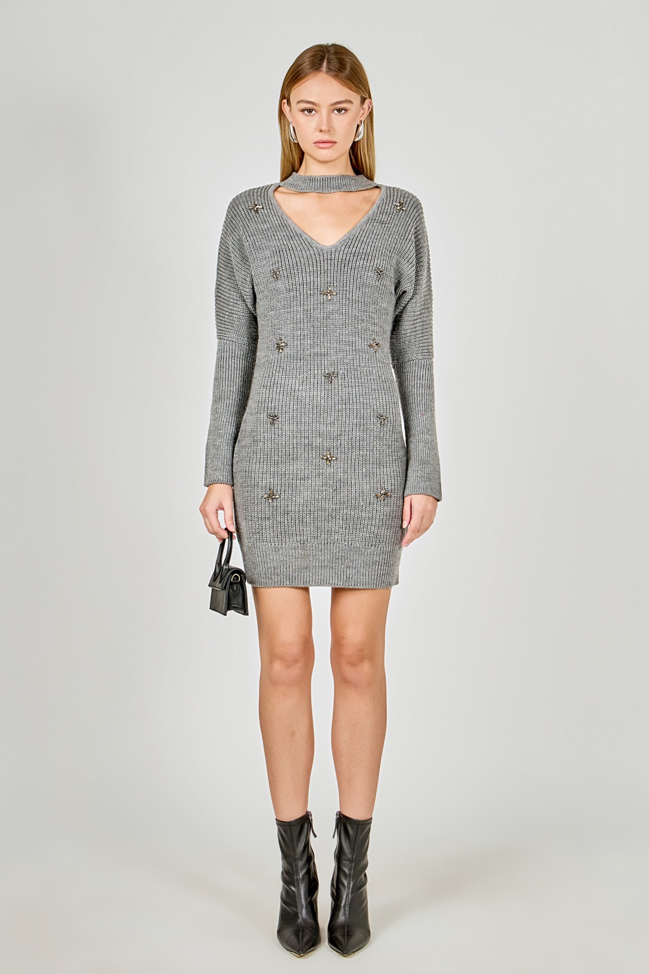 Embellished Sweater Dress is all you need for a cozy day that still feels special. The sweater texture is warm and comfortable while the cut out details and beaded trim at the front make this long-sleeved dress perfect for a casual day that still wants to impress without trying too hard.
