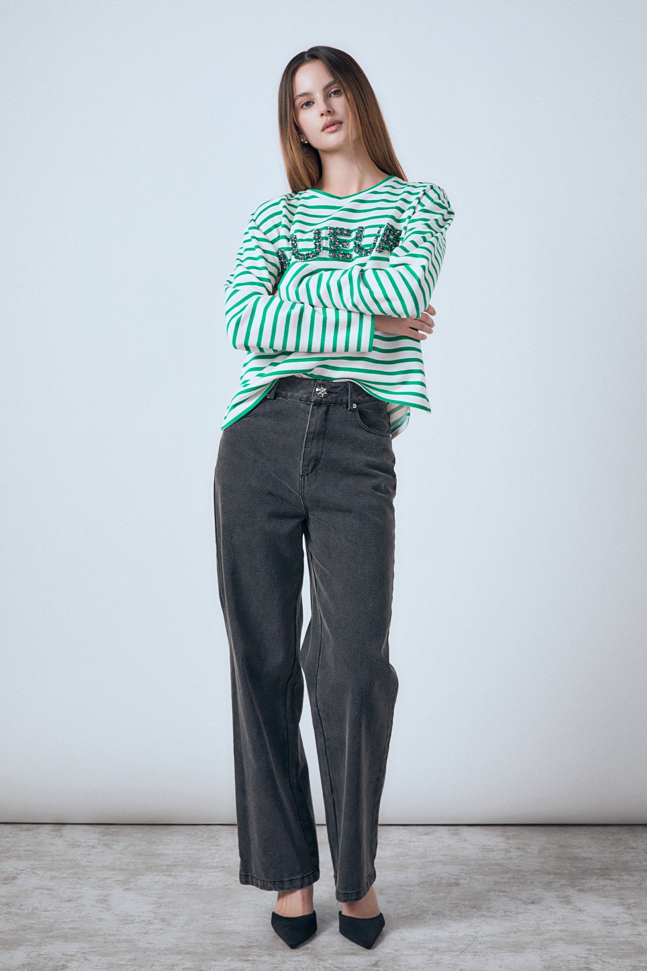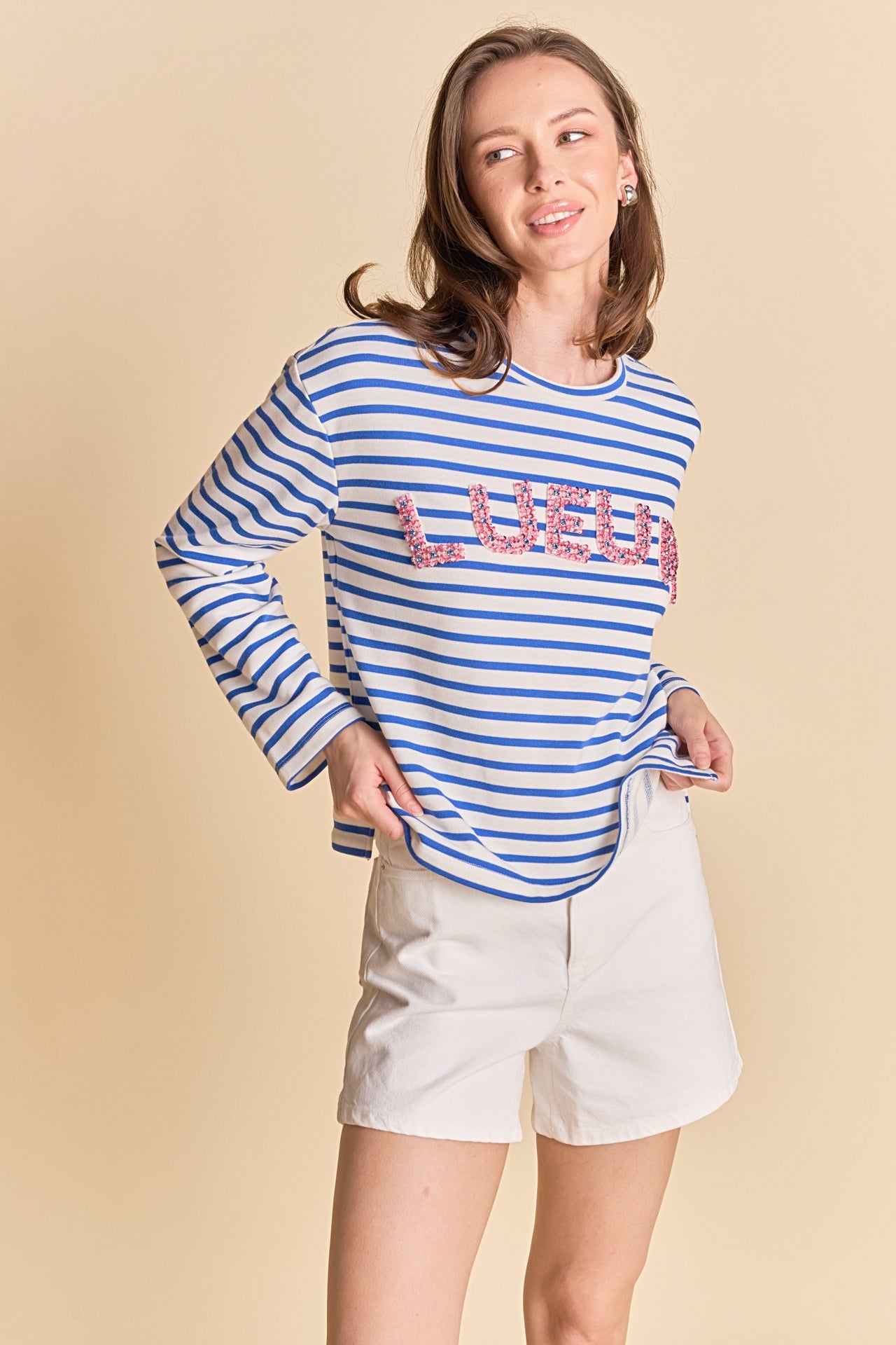 Get ready to add some flair to your wardrobe with our Embellishment Sweatshirt! Featuring bold stripes and a round neckline this top is perfect for everyday wear. The front embellishment patch adds a touch of glamour while the long sleeves keep you warm and cozy. Made with high-quality material this sweatshirt is both comfortable and stylish. Stand out from the crowd and make a statement with our must-have Embellishment Sweatshirt. Perfect for any occasion this top is a must-have for fashion-forward individuals. Order now and elevate your style game!