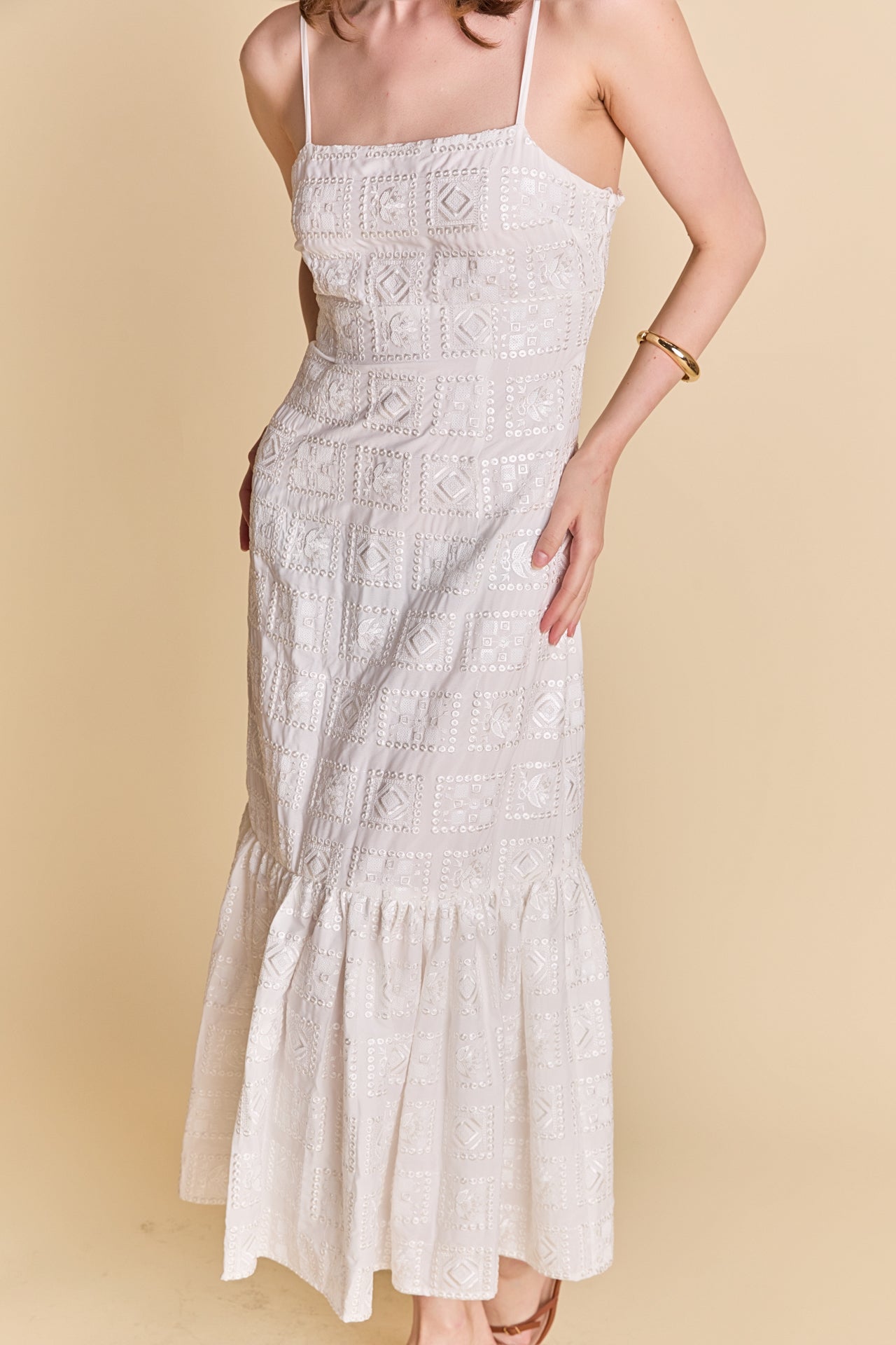 Add a touch of shimmer to your wardrobe with our Embroidered Sequins Maxi Dress! This stunning piece boasts intricate embroidery and dazzling sequin details for a glamorous look. The adjustable straps ensure a perfect fit, while the center back zipper makes it easy to slip on and off. Wear it to your next special occasion and turn heads with your impeccable style. Perfect for weddings, proms, or fancy events. Elevate your fashion game with our Embroidered Sequins Maxi Dress. Don't miss out on this must-have dress! Order yours now!