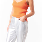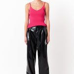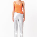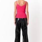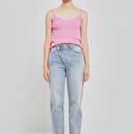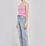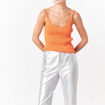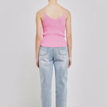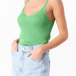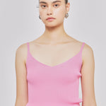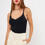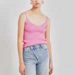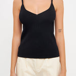 This top will have you feeling elevated every day. The soft ribbed knit fabric is comfortable and flattering. The front and back V-neck and thin straps add a touch of femininity and style. Whether you're dressing up for a special occasion or just want to feel your best this top will have you feeling confident and beautiful.