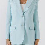 End your search for the perfect everyday blazer. With an oversized look and a versatile style, this blazer can take you from the office to happy hour with ease. The two button closure and flap pockets give it a polished finish, while the long sleeves and shoulder pads make it comfortable to wear all day long. Whether you're dressing up or down, this blazer is sure to become your go-to piece.