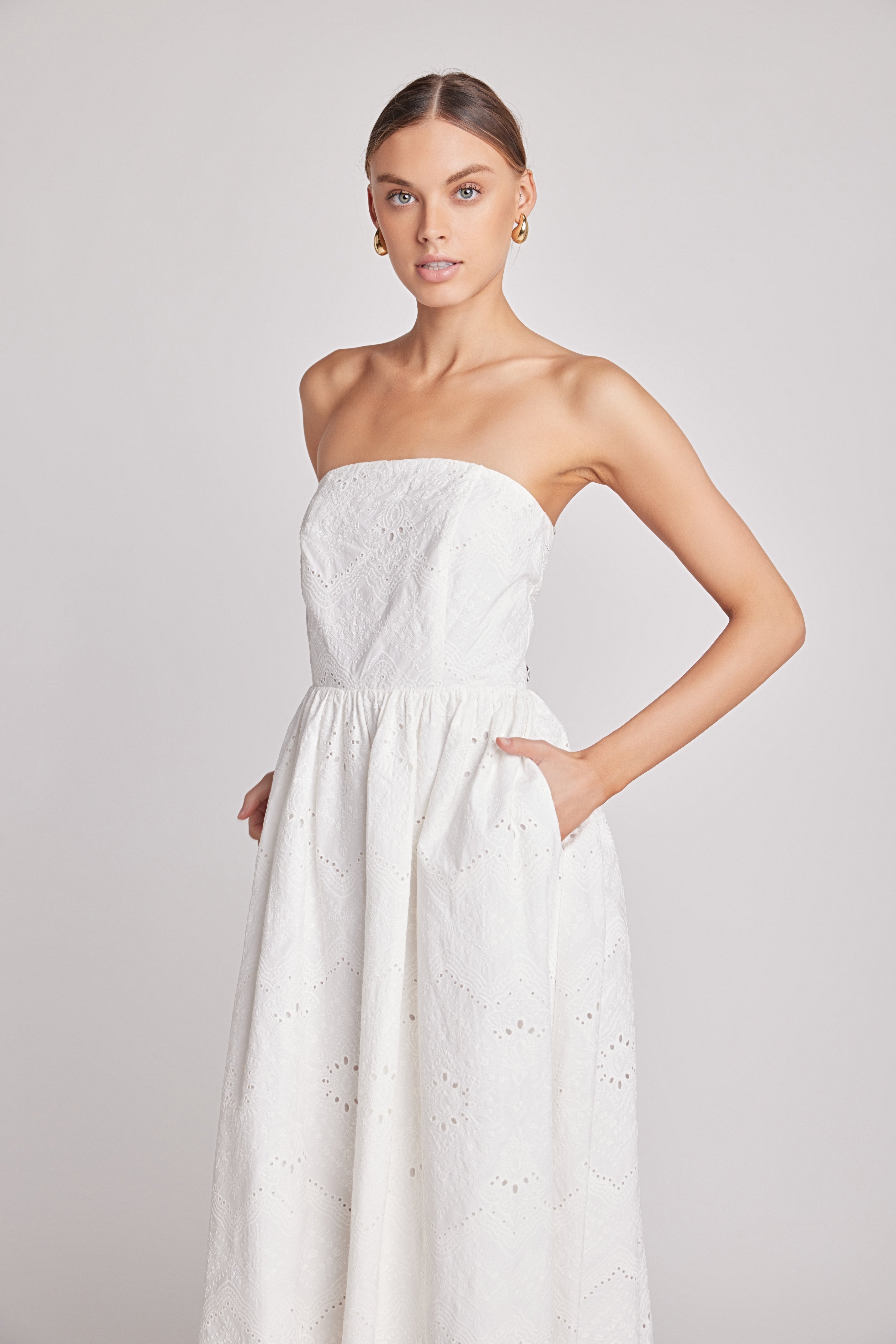 Evangeline Eyelet Strapless Maxi Dress