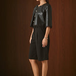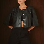 Elevate your wardrobe with our stylish Faux Leather Cropped Jacket. Crafted from high-quality faux leather, this jacket boasts a trendy cropped length and front center buttons for a fashionable touch. The jacket features functional pockets for added convenience and versatility. Perfect for any occasion, dress it up or down for a chic look. Our faux leather jacket is a statement piece that will enhance any outfit. Grab yours today and make a fashion statement!