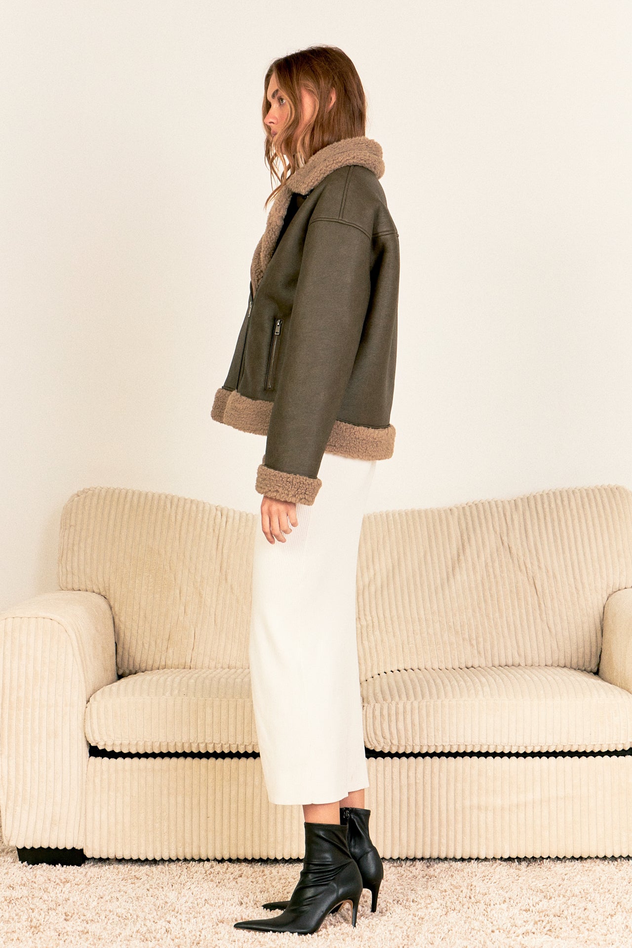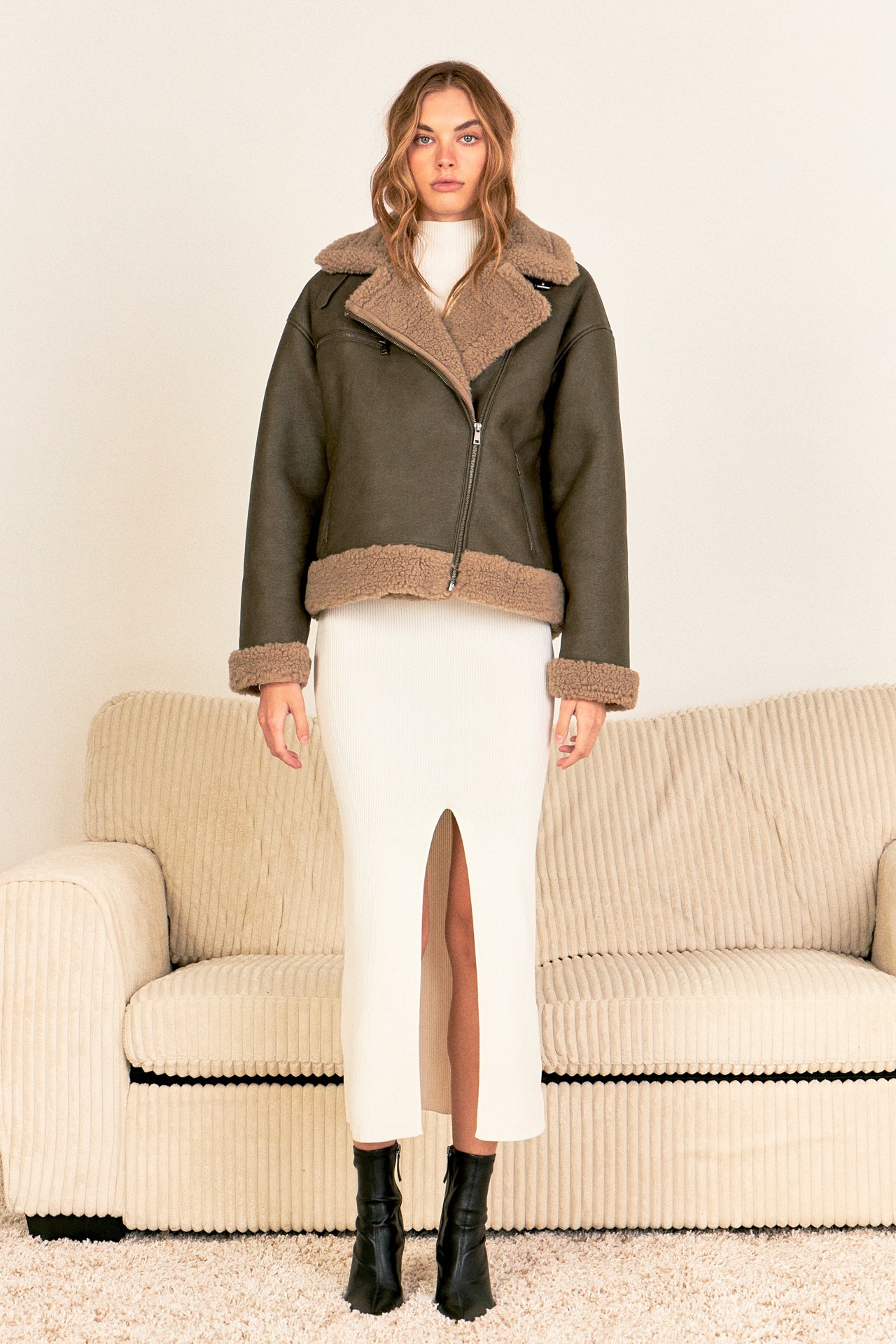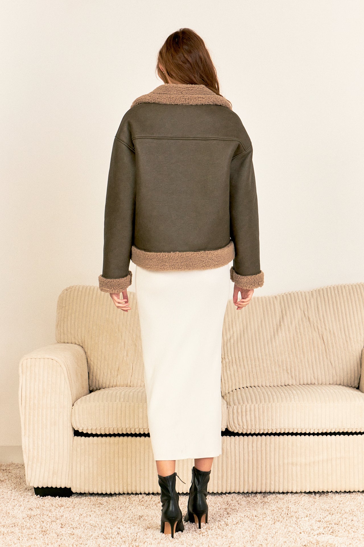 Introducing our Faux Leather Jacket with Sherpa Lining, the perfect outerwear for both style and comfort. The trendy jacket features a zipper closure for ease of wear, a collared neckline for a sleek look, and a back yoke for added detail. Plus, the jacket is fully lined with plush sherpa fabric that provides ultimate warmth and coziness. Versatile for any occasion, this jacket combines the coolness of leather with the softness of sherpa. Make a statement with this must-have piece. Shop now and stay warm in style!