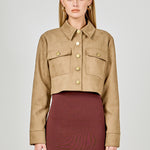 Faux Suede Cropped Pocketed Jacket