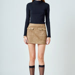 Our Faux Suede Pocketed Mini Skirt is crafted from soft, high-quality faux suede for a refined and wearable look. The A-line silhouette flatters every figure, while the side pockets add practicality without compromising style. Wear it with heels and a blouse for a polished outfit, or pair it with sneakers and a tee for effortless casual style. A versatile mini skirt that works for any occasion.