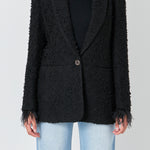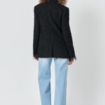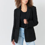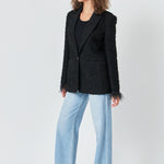 Elevate your style with this chic blazer. With a touch of feather trim, this tweed blazer is perfect for dressing up any look. The standard fit ensures that you'll feel comfortable all day long. Whether you're headed to the office or out on a date, this blazer will have you looking sharp.