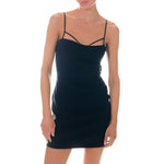 The perfect little party dress. This mini dress is fitted and sleek with delicate strappy detail. An invisible side zipper ensures you're comfortable all night long. With a fully lined bodice, this dress is sure to flatter your figure. Add some heels, and you're ready to turn heads at your next special event.
