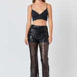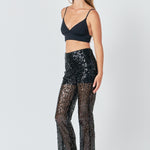 Our Flared Sequins Pants are the perfect mix of glamour and comfort. Featuring mid-stretch sequins these pants have a high-waisted fit for an especially sleek look. The fitted silhouette contours to your frame for a flattering look that will make heads turn. Light up any event you go to with these luxurious glamorous pants, the perfect blend of chic and elegance.