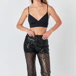 Our Flared Sequins Pants are the perfect mix of glamour and comfort. Featuring mid-stretch sequins these pants have a high-waisted fit for an especially sleek look. The fitted silhouette contours to your frame for a flattering look that will make heads turn. Light up any event you go to with these luxurious glamorous pants, the perfect blend of chic and elegance.