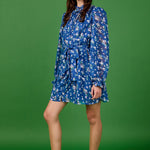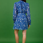 Turn heads wherever you go in this floral chiffon mini dress. Cut for a relaxed fit, it features neck ruffle detail and comes with a self-tie belt to define your waist. Make a statement with this ultra-feminine dress.