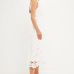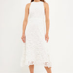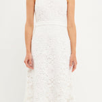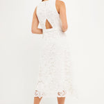This floral crochet lace midi dress is sure to turn heads at your next special event. With intricate lace details and a daring back cutout, this dress will make you feel confident and beautiful. The perfect blend of elegance and modern chic, this dress is perfect for any formal occasion.