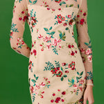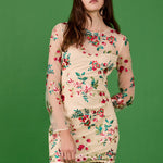 This stylish mini dress features an eye-catching floral embroidery a flattering fitted silhouette and long sleeves for a sophisticated feminine look. Perfect for special occasions and elegant evenings out.