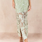 Make a statement in our Floral Embroidered Midi Skirt. The delicate embroidered flowers add a touch of romance to the classic midi length, while the side zipper ensures a sleek and comfortable fit. The front slit adds a flirty touch and showcases your legs. Perfect for any occasion, this skirt is a must-have for your wardrobe. Elevate your style game with this unique and elegant piece. Perfect for spring and summer, this skirt is an eye-catching addition to any outfit. Shop now and stand out in our Floral Embroidered Midi Skirt.