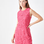 Step out in style with this beautiful mini dress. This fitted mini length dress is made of soft lace fabric and features a round neckline and delicate floral detail. Perfect for any event this dress is finished off with an embroidered detail that is sure to make you stand out. Make a bold fashion statement in this timeless piece and feel ready to take on any occasion!