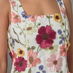 Introducing our Floral Embroidered Mini Dress the perfect blend of chic femininity and playful charm. This mini length dress boasts stunning floral embroidery adding a touch of elegance to any occasion. The back zipper ensures a secure fit while the sleeveless design allows for a flattering silhouette. Crafted with premium quality materials this dress is both comfortable and durable. Ideal for spring and summer it will be a staple in your wardrobe. Elevate your style game and turn heads with our Floral Embroidered Mini Dress. Don't miss out on this must-have piece!
