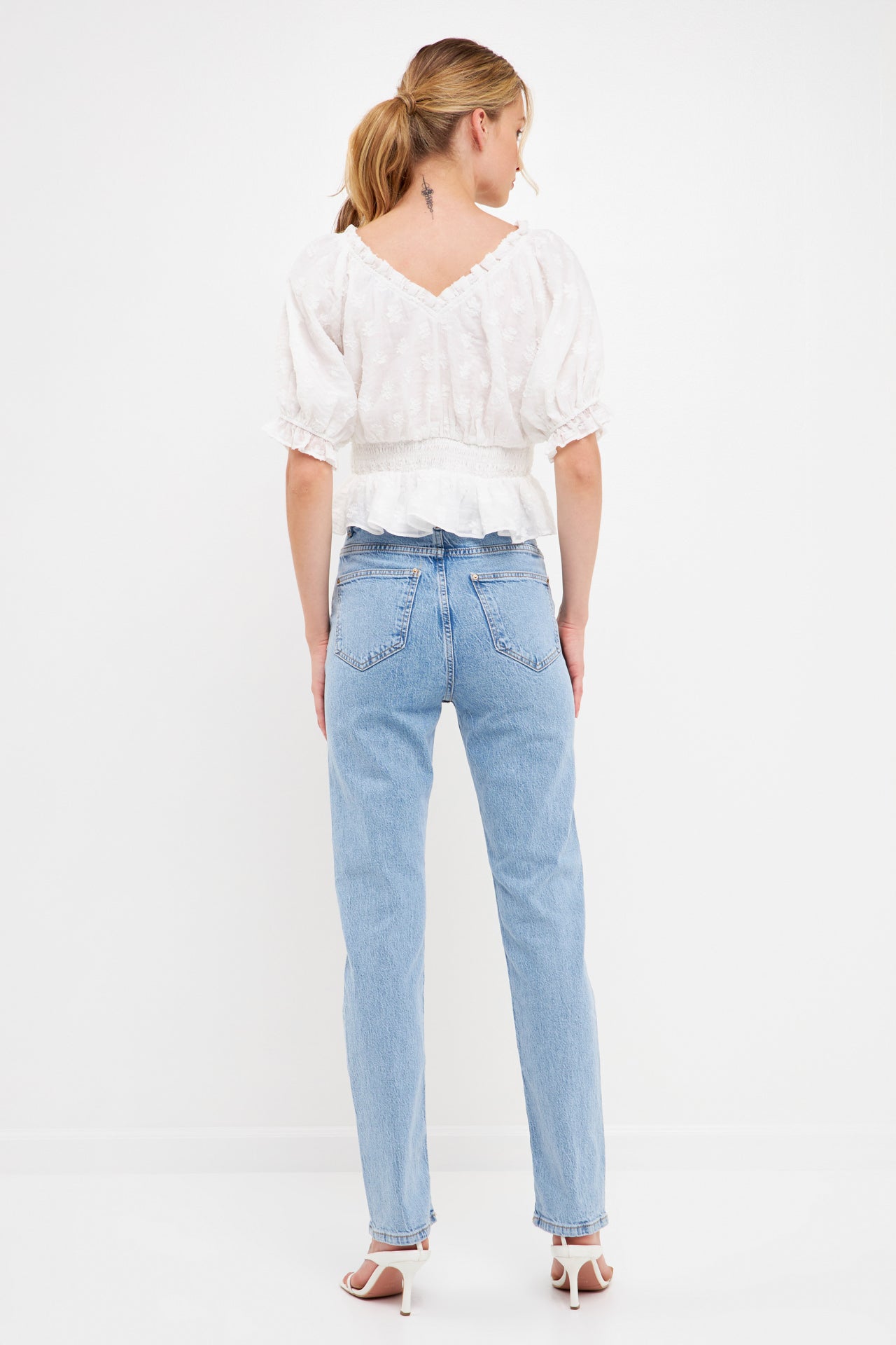 Take your style up a notch with our new Floral Embroidered Smocked Off Shoulder Top. This top is perfect for any special event. With beautiful floral embroidery and puff sleeves, it's sure to make a statement. Plus, the partial lining ensures you'll stay comfortable all night long. Whether you're dressing it up or down, this top is a must-have for any wardrobe.