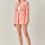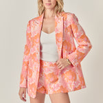 Introducing our Floral Jacquard Blazer - the perfect blend of sophistication and on-trend style. Crafted from a luxurious floral jacquard fabric, this blazer will elevate any outfit. The classic collar and lapel add the perfect touch of elegance, while shoulder pads provide structure for a flattering fit. This blazer is a statement piece that can transition effortlessly from work to weekend. Pair it with a sleek pair of pants or a flowy skirt for a chic look. Update your wardrobe with our floral jacquard blazer and turn heads wherever you go.