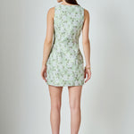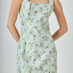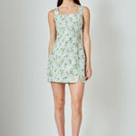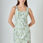 Introducing the ultimate statement piece - our Floral Jacquard Front Slit Mini Dress. Designed with a classic square neckline and sleeveless silhouette, this dress is a must-have for any fashionista. The stunning floral jacquard pattern adds a touch of elegance, while the front slit creates movement and adds a flirty touch. Perfect for any occasion, this dress will have all eyes on you. Don't miss out on this versatile and trendy piece. Shop now and elevate your wardrobe with our Floral Jacquard Front Slit Mini Dress.