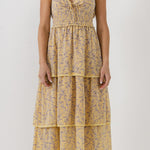 Captivating and alluring. This Floral Lace Trim Detail Maxi Dress is sure to turn heads. The flowy silhouette and beautiful floral print make this a must-have for your next special occasion.