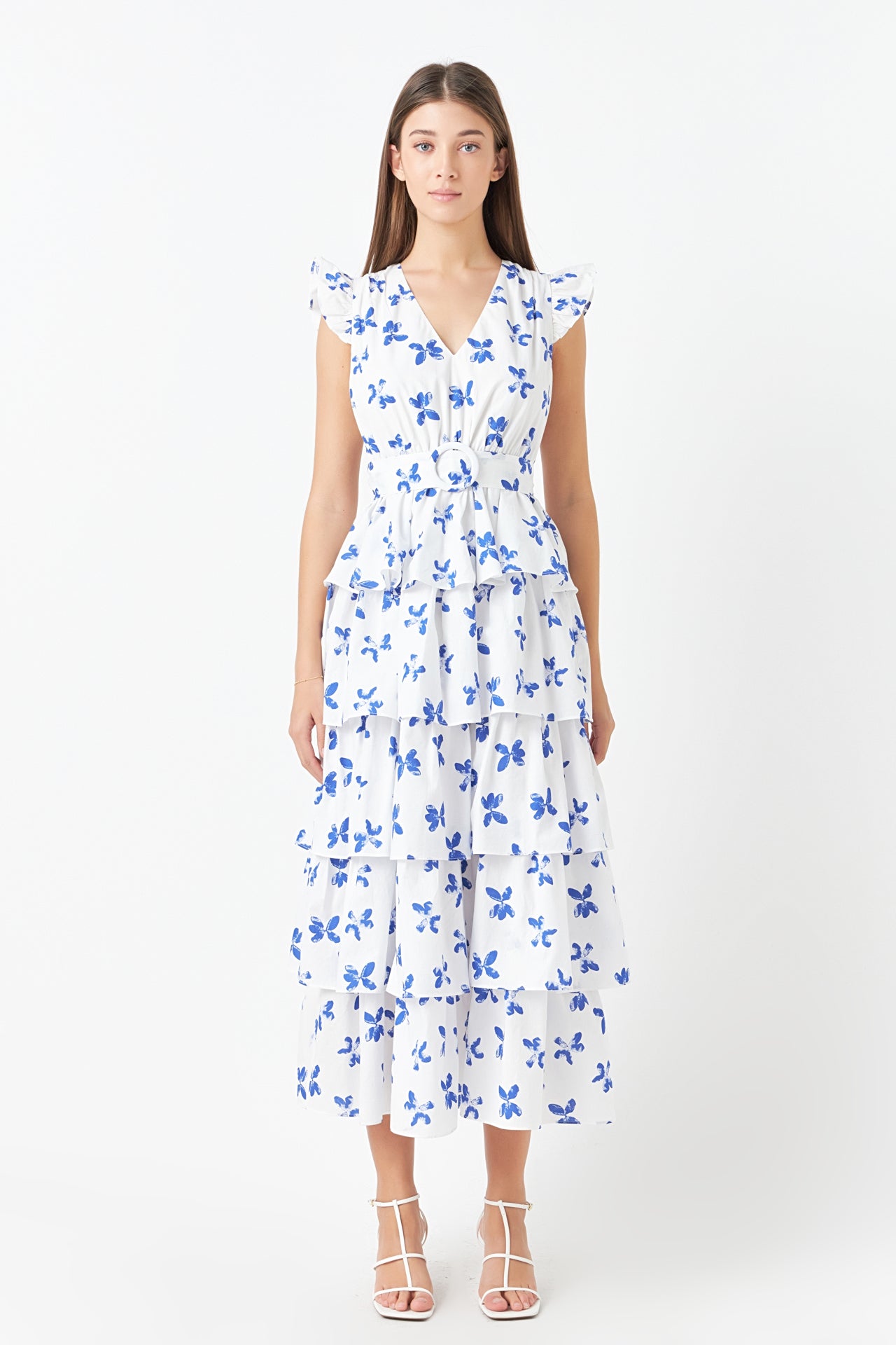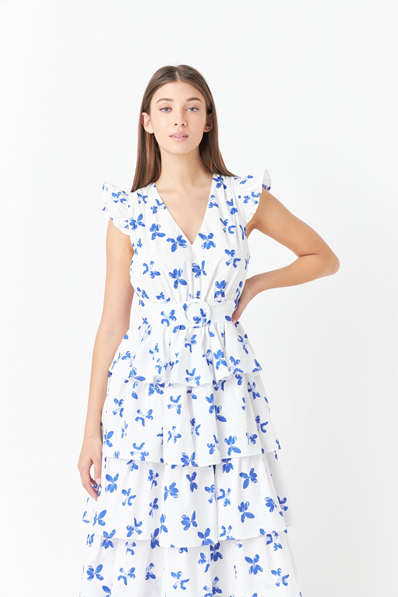 This Floral Layered Long Dress is the perfect way to show off your sense of style and draw all eyes to you. This striking dress features a stunning V neckline combined with beautiful floral prints, plus a row of ruffles on the shoulder. The sleeveless design ensures you're cool and comfortable during warmer weather. Look and feel your best in this gorgeous dress, perfect for any formal event!