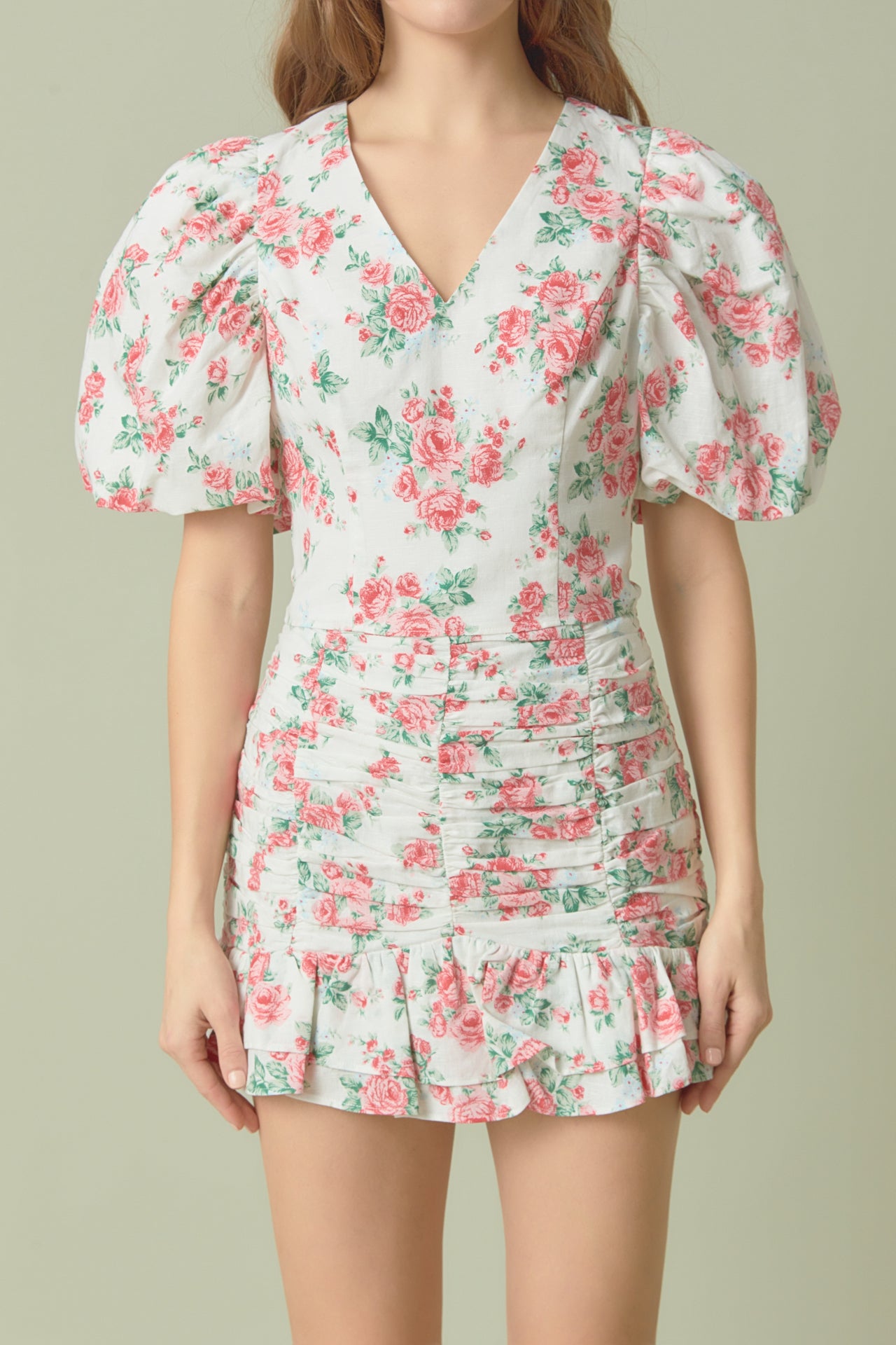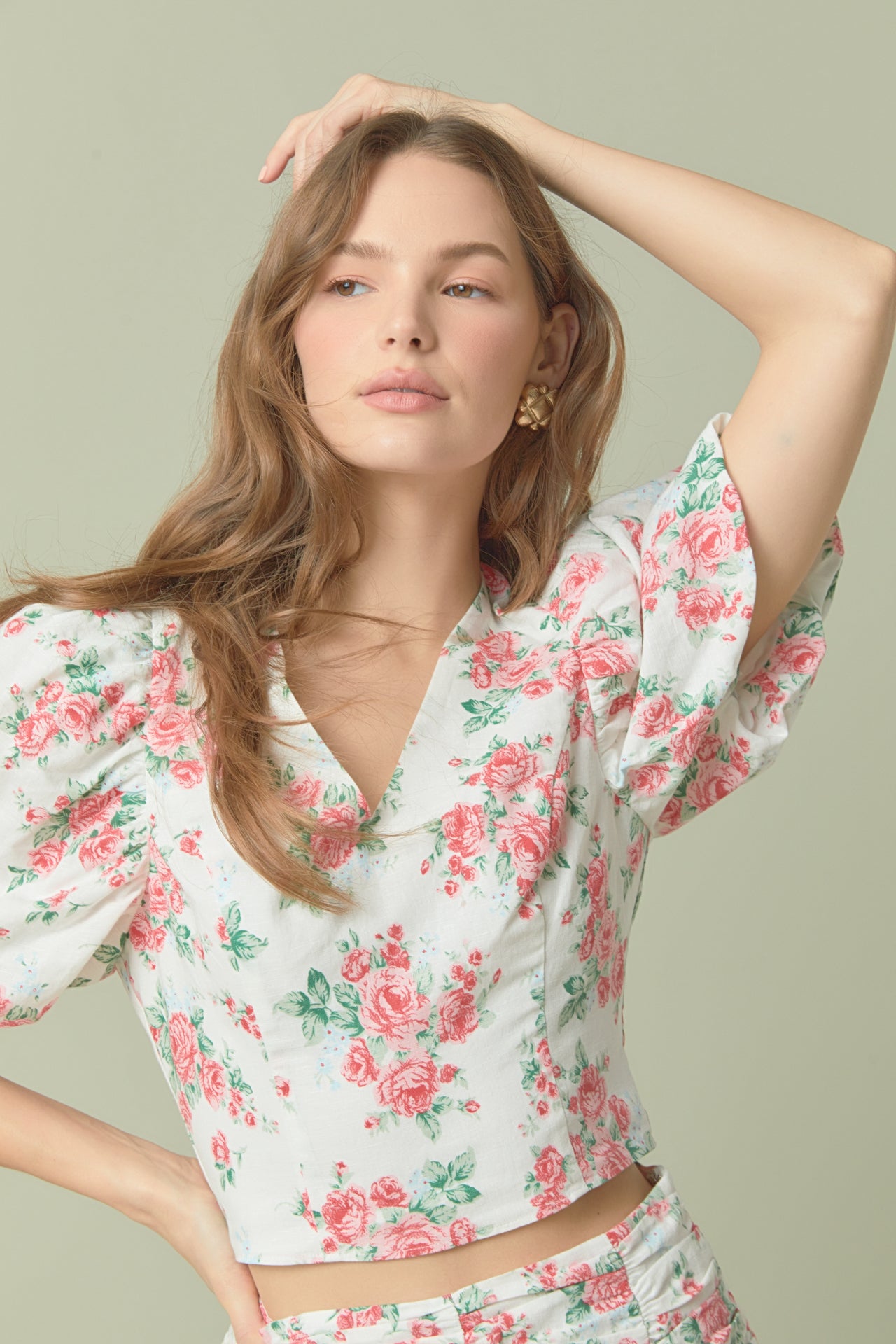 Bring summer into your wardrobe with this floral linen top. Perfect for the beach or farmer's market this top feature a v-neckline and a cropped length with blouson short sleeves. The floral print fabric gives this piece a fun feminine flair. With this stylish and lightweight linen top you'll be ready for an afternoon of sun in no time!
