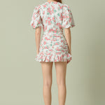 Add a sweet and easy-breezy update to your wardrobe with this flitted mini skirt. Crafted from floral linen fabric with a ruched detail and subtle ruffles this piece will upgrade any look day or night. Get ready to take your outfit up a notch with this one-of-a-kind skirt.