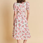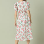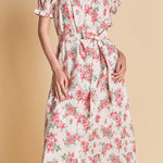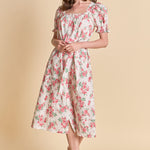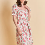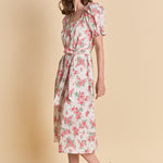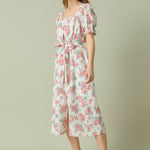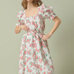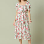 Are you looking to make a statement with your style? Then look no further than this modern floral print linen midi dress. Crafted in a lightweight fabric with an all-over floral pattern this dress features a square neckline puff short sleeves and a loose fit. It's detailed with a removable belt for added definition and movement. Whether it's for a day out or even an evening occasion this midi dress fits the bill.