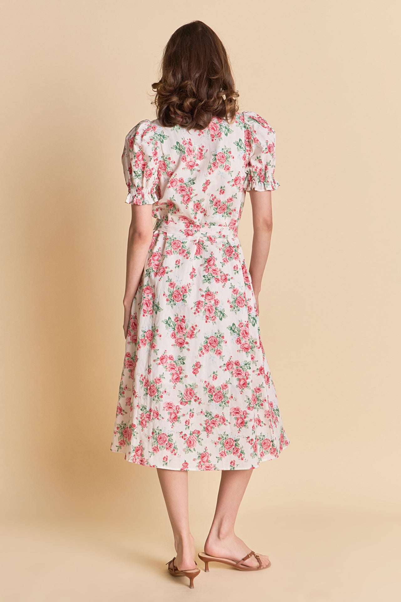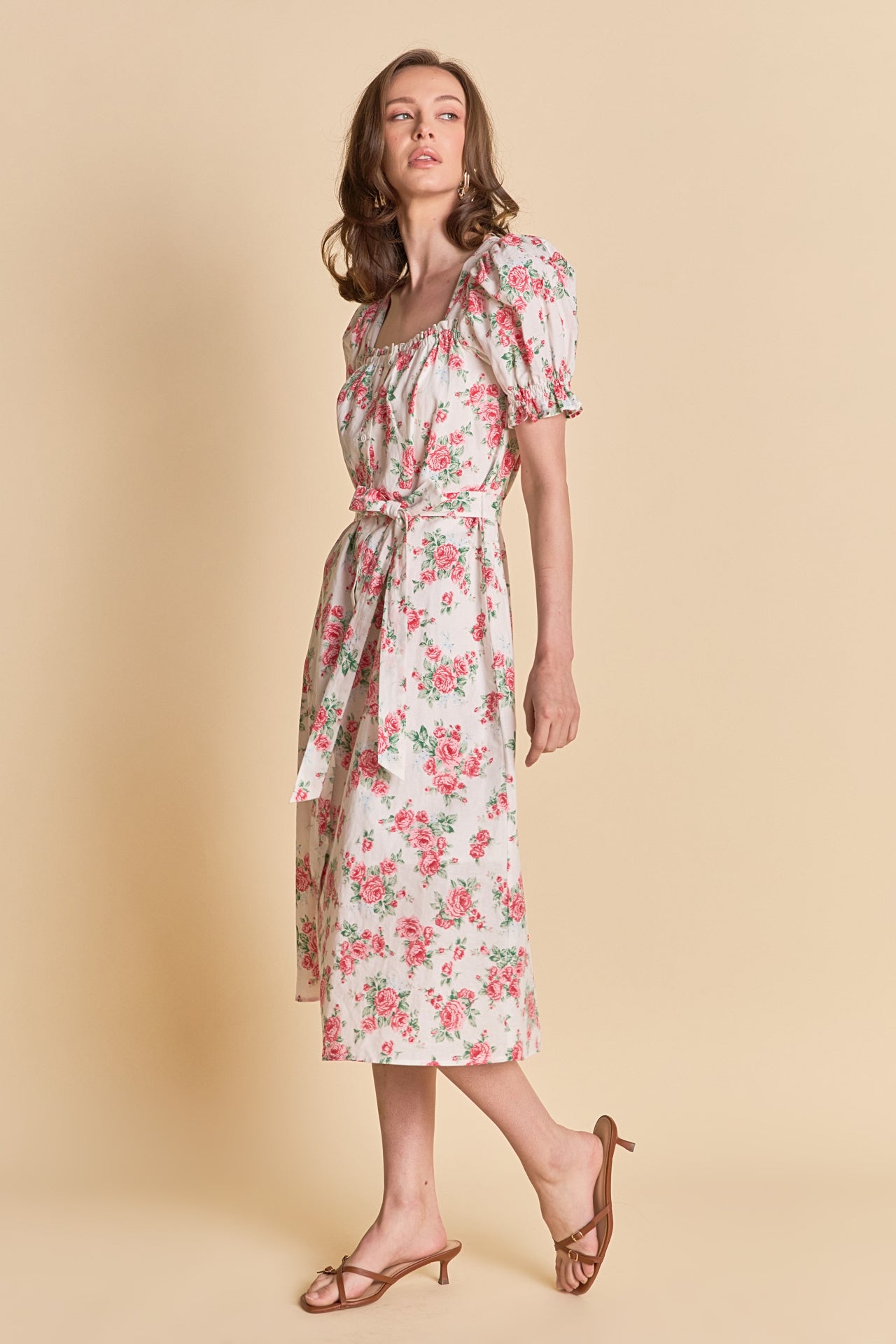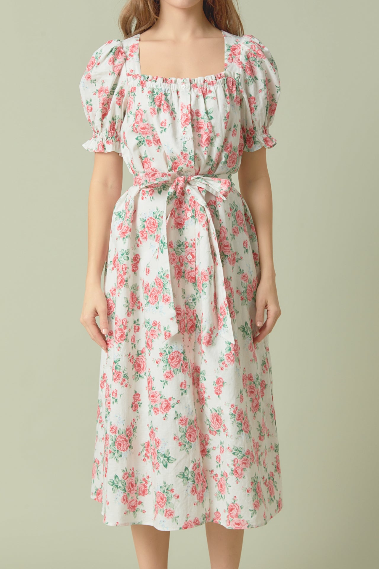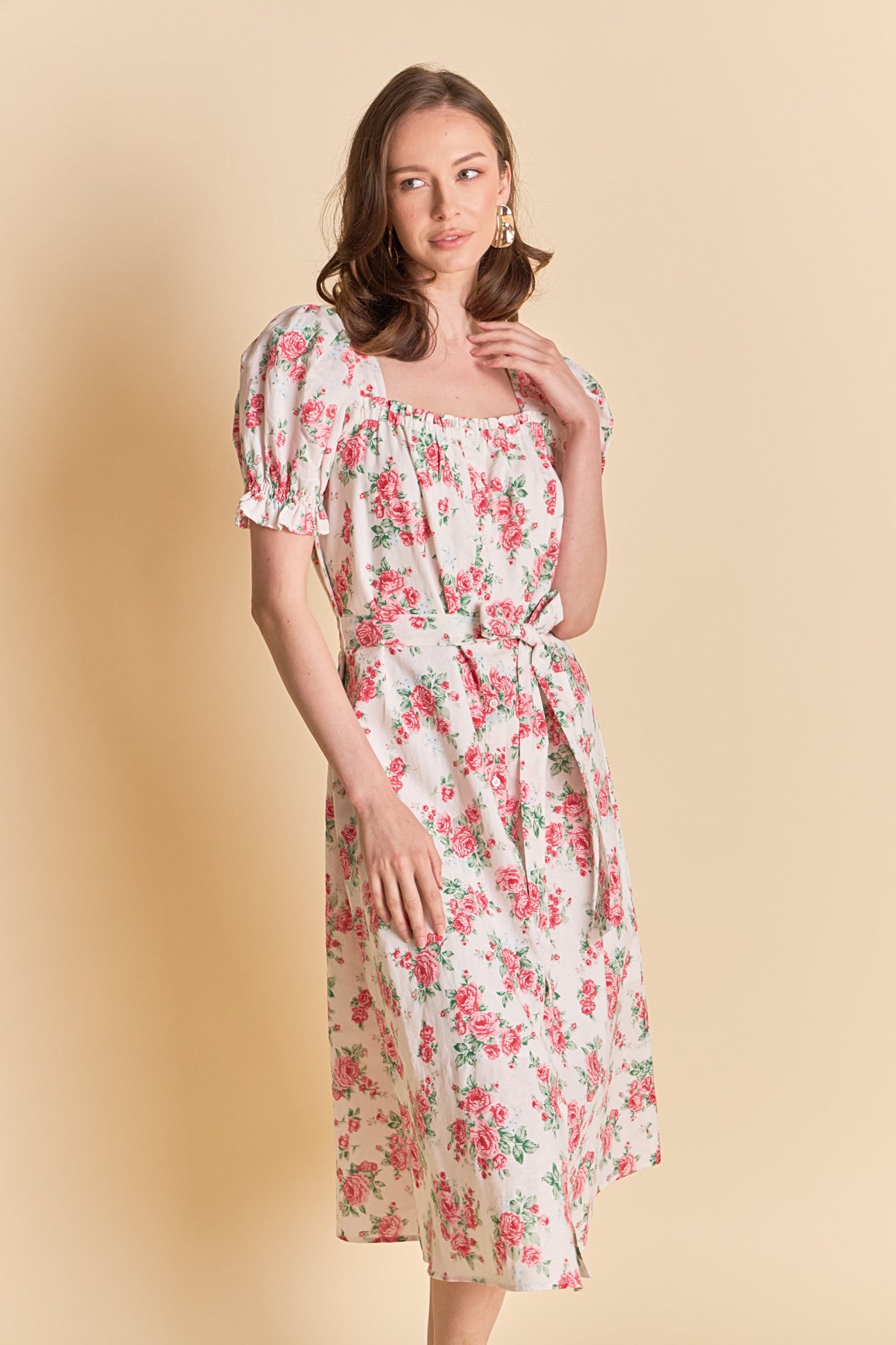 Are you looking to make a statement with your style? Then look no further than this modern floral print linen midi dress. Crafted in a lightweight fabric with an all-over floral pattern this dress features a square neckline puff short sleeves and a loose fit. It's detailed with a removable belt for added definition and movement. Whether it's for a day out or even an evening occasion this midi dress fits the bill.