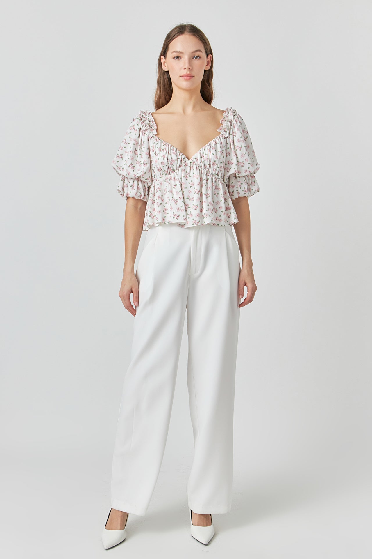 This breath-taking Floral Print Satin Top is a must-have for any wardrobe! With its stunning floral prints, sweetheart neckline, and short puff sleeves, you will look and feel beautiful. Ruffle detailed shoulders add a feminine flair to the piece. This top is sure to add charm and elegance to any occasion. With its exquisite look, low maintenance, and durability, it is a perfect addition to your wardrobe. Get yours today!