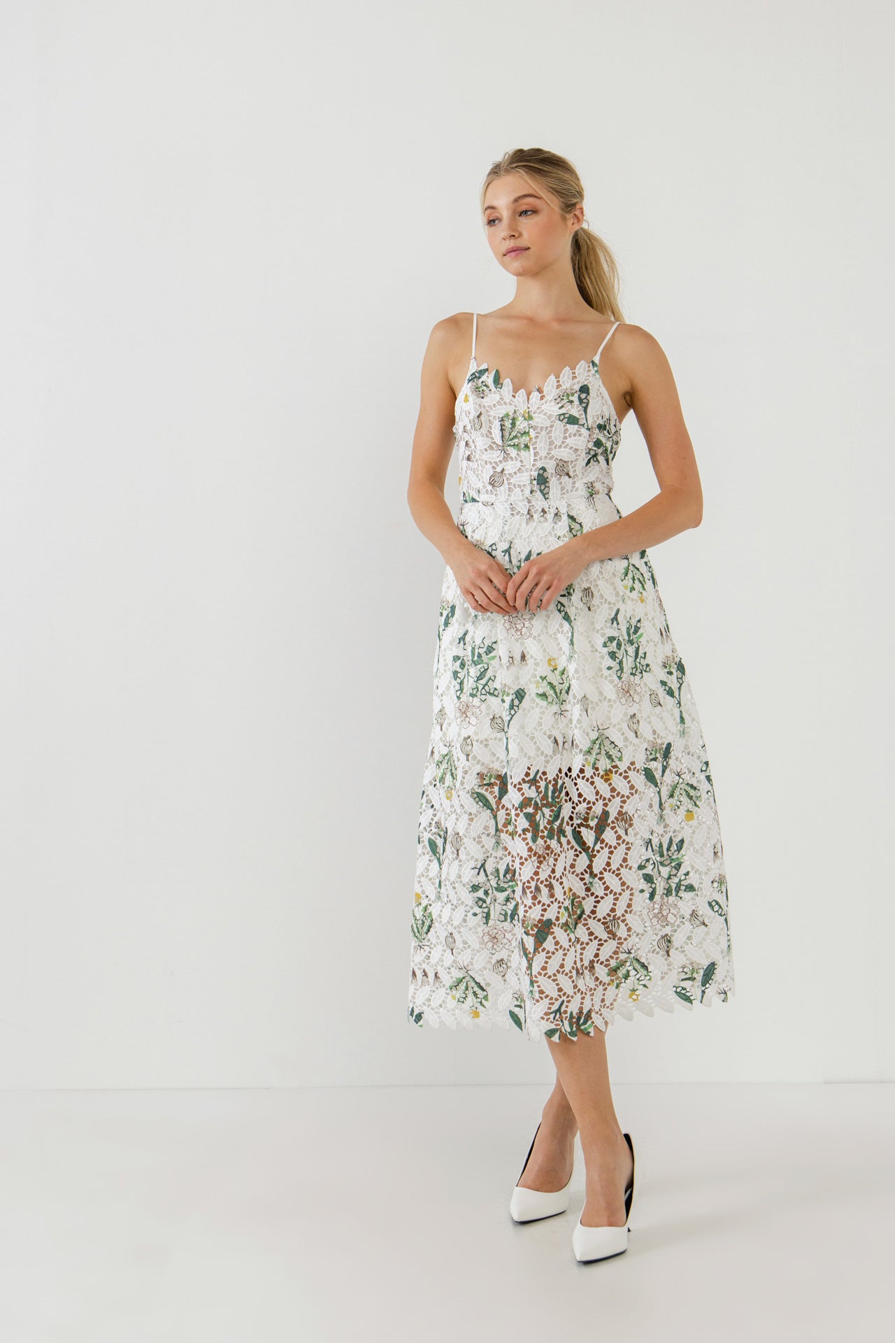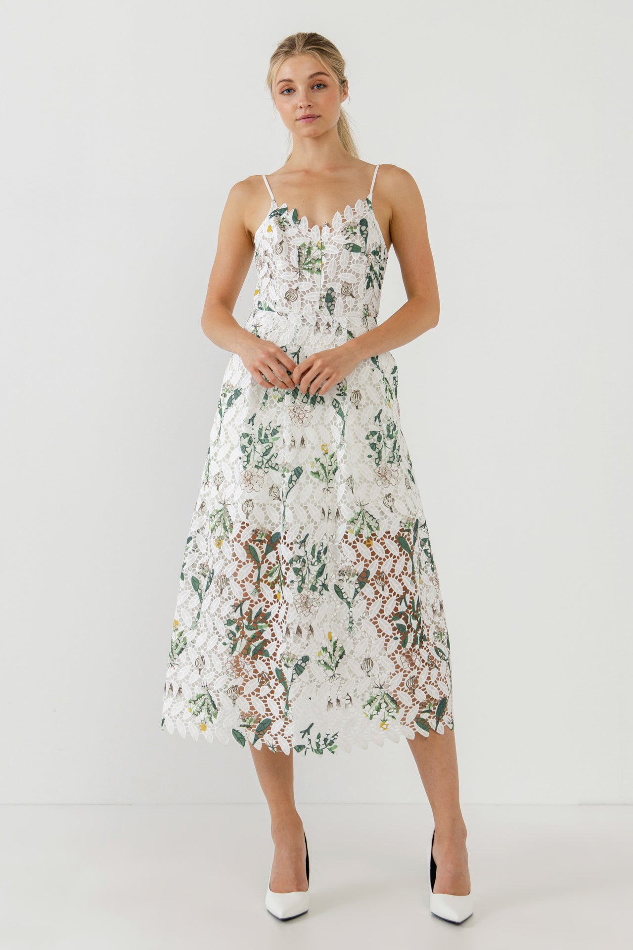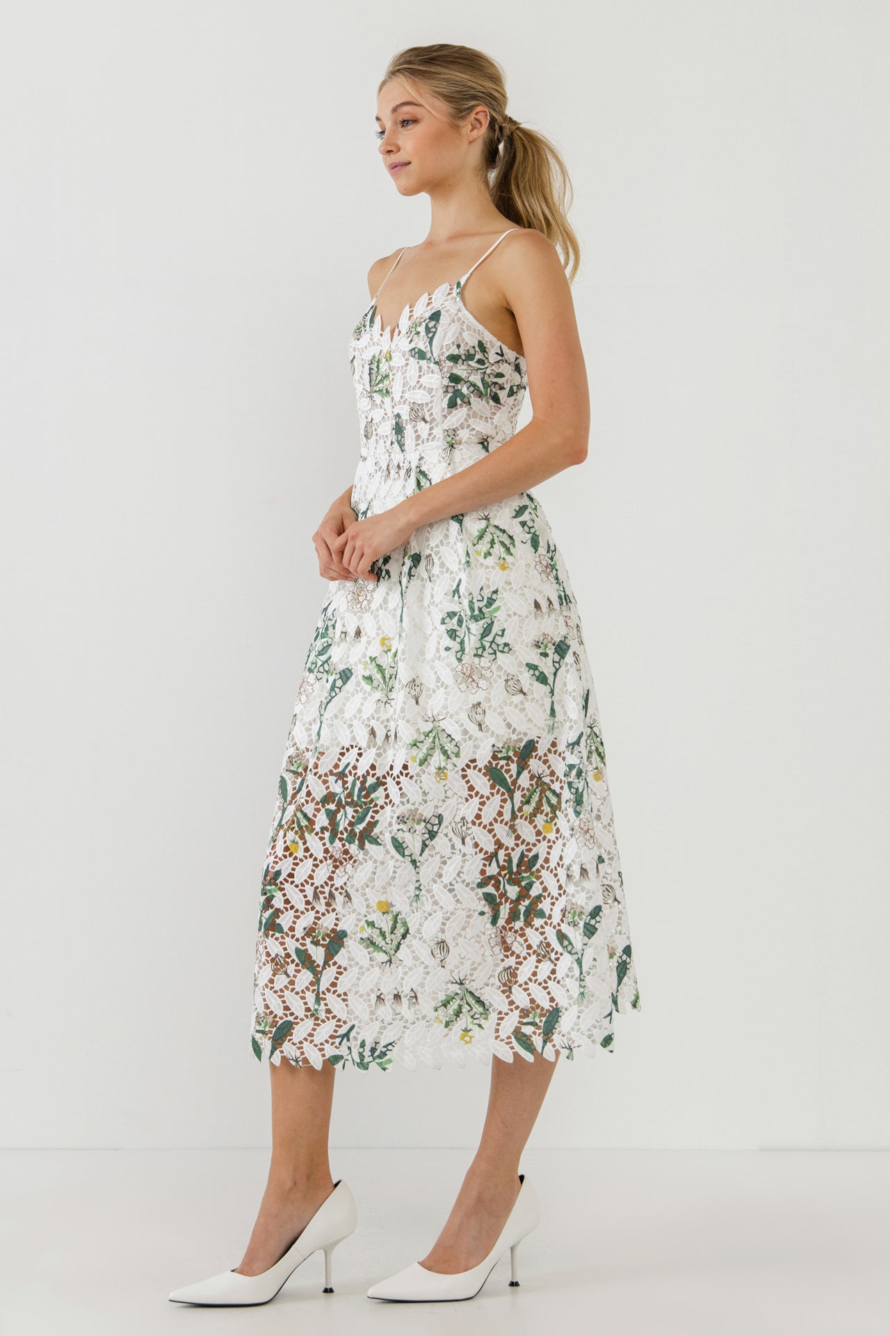 Floral Printed Lace Midi Dress