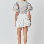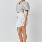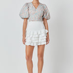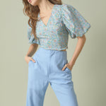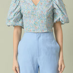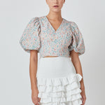 With a feminine neckline and whimsical sleeves, this top is sure to turn heads. Elevate your everyday look with our Floral Puff Sleeve Cropped Top. With a flattering V-neck and playful short balloon sleeves, this top will have you looking chic all season long. Made from lightweight fabric with a floral print, this top is perfect for summer days. Add it to your wardrobe and enjoy versatile style that can be dressed up or down.