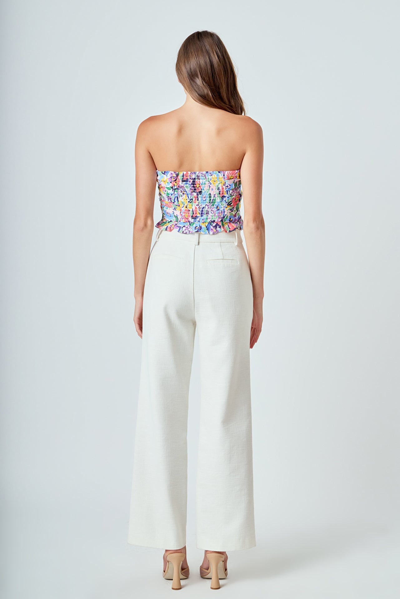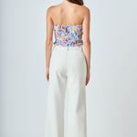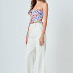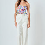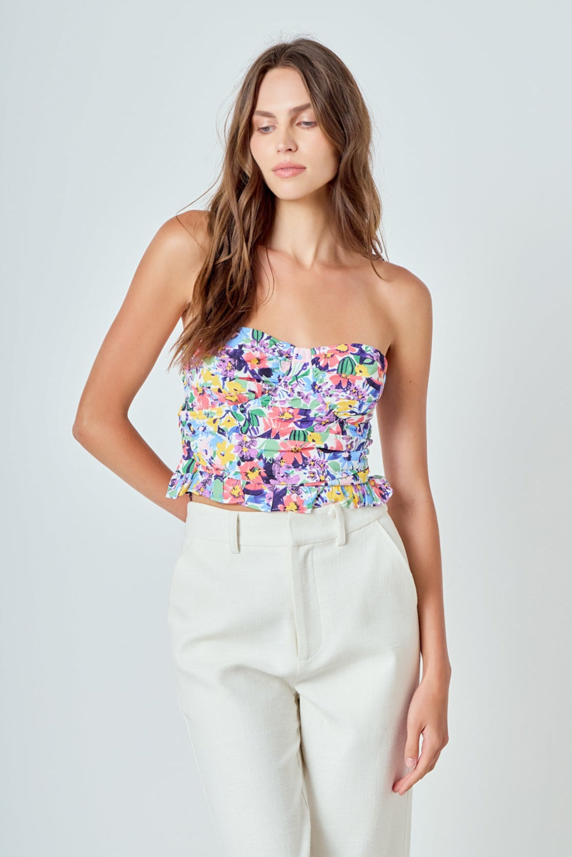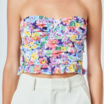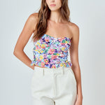 This pretty strapless top is perfect for any summer occasion. With a beautiful floral print and a ruched bust, this top is sure to turn heads. The side zipper makes it easy to put on and take off, while the lining ensures that you stay comfortable all day long. Whether you're attending a wedding or just going out for dinner with friends, this top will have you looking your best.
