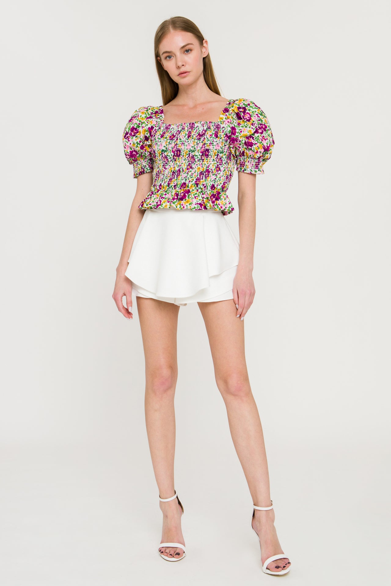 Make a statement with our Floral Smocked Top! Featuring a beautiful flower print that exudes femininity and charm, this top also boasts a flattering square neckline and delicate smocking detail that accentuates your figure. The trendy puff sleeves add a touch of drama and flair to this must-have piece. Perfect for any occasion, from brunch to date night, this top will have you looking and feeling your best. Don't miss out on adding this versatile and stylish top to your wardrobe!