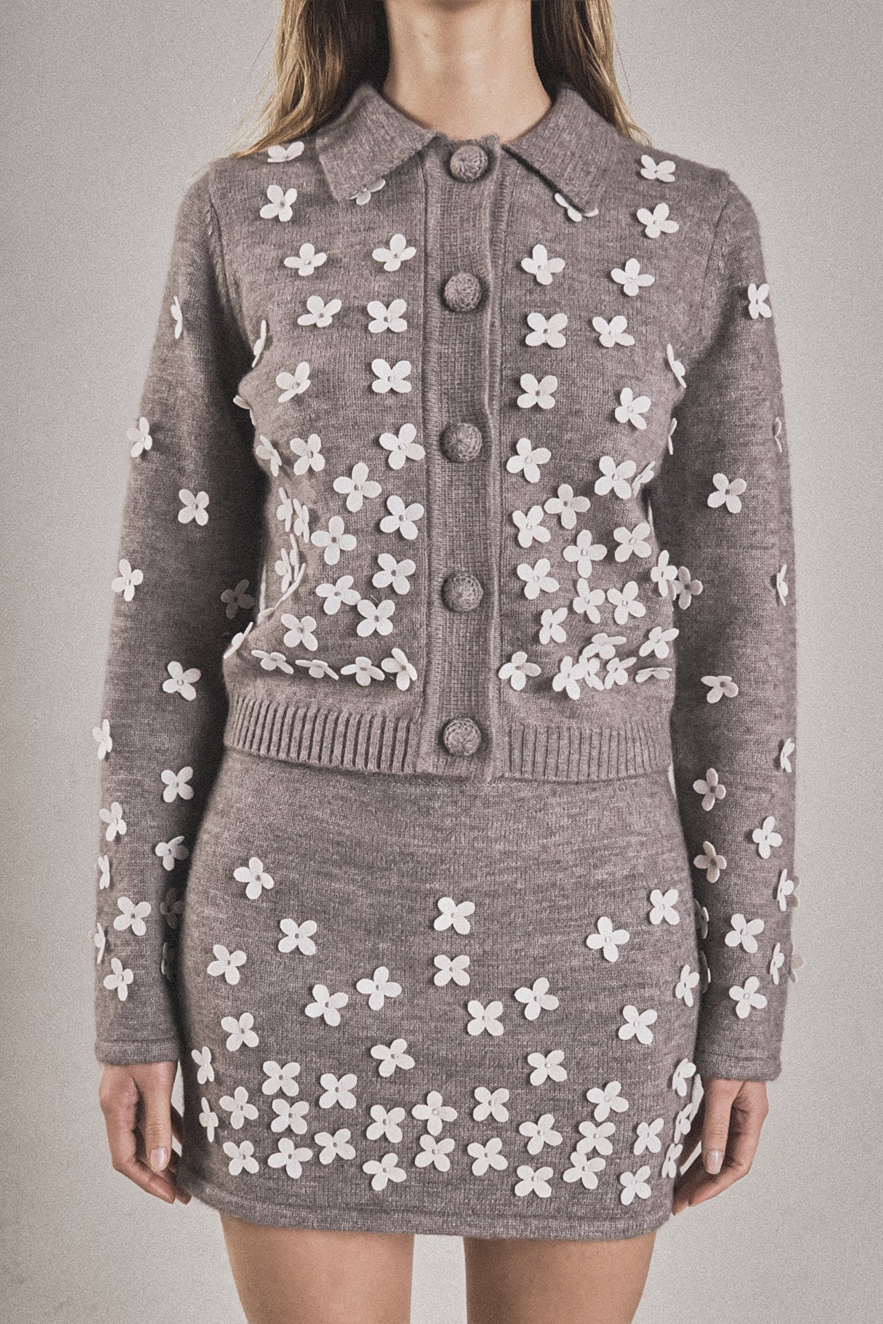 The Flower Detail Knit Cardigan blends classic style with playful detail. Crafted from soft, high-quality knit, it features a timeless collar, long sleeves, and a front button closure. Vibrant floral accents add a pop of color and personality, making it perfect for layering over any outfit. Comfortable, durable, and versatile, this cardigan is a seasonal wardrobe essential.