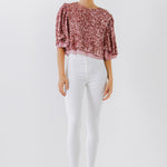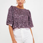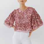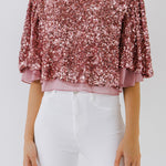 The ethereal flutter sleeves and sequin fabric of this top make it a unique, dreamy piece. Plus, the relaxed fit and lining make this top extremely comfortable to wear. Perfect for a night out, pair this sequin top with your favorite mini skirt‚ or high-waisted pants and chunky heels.